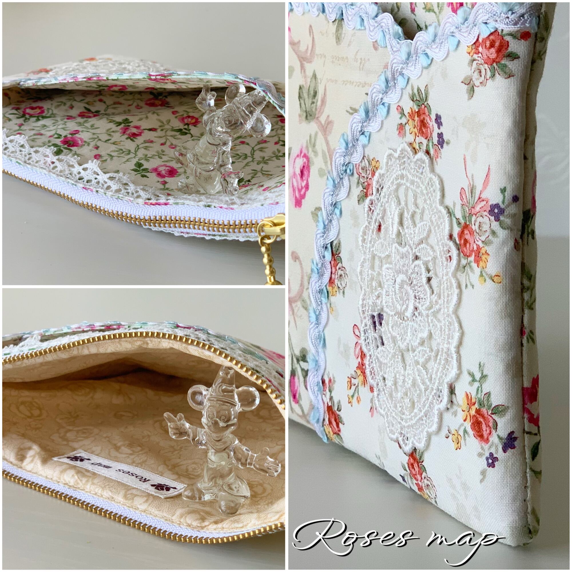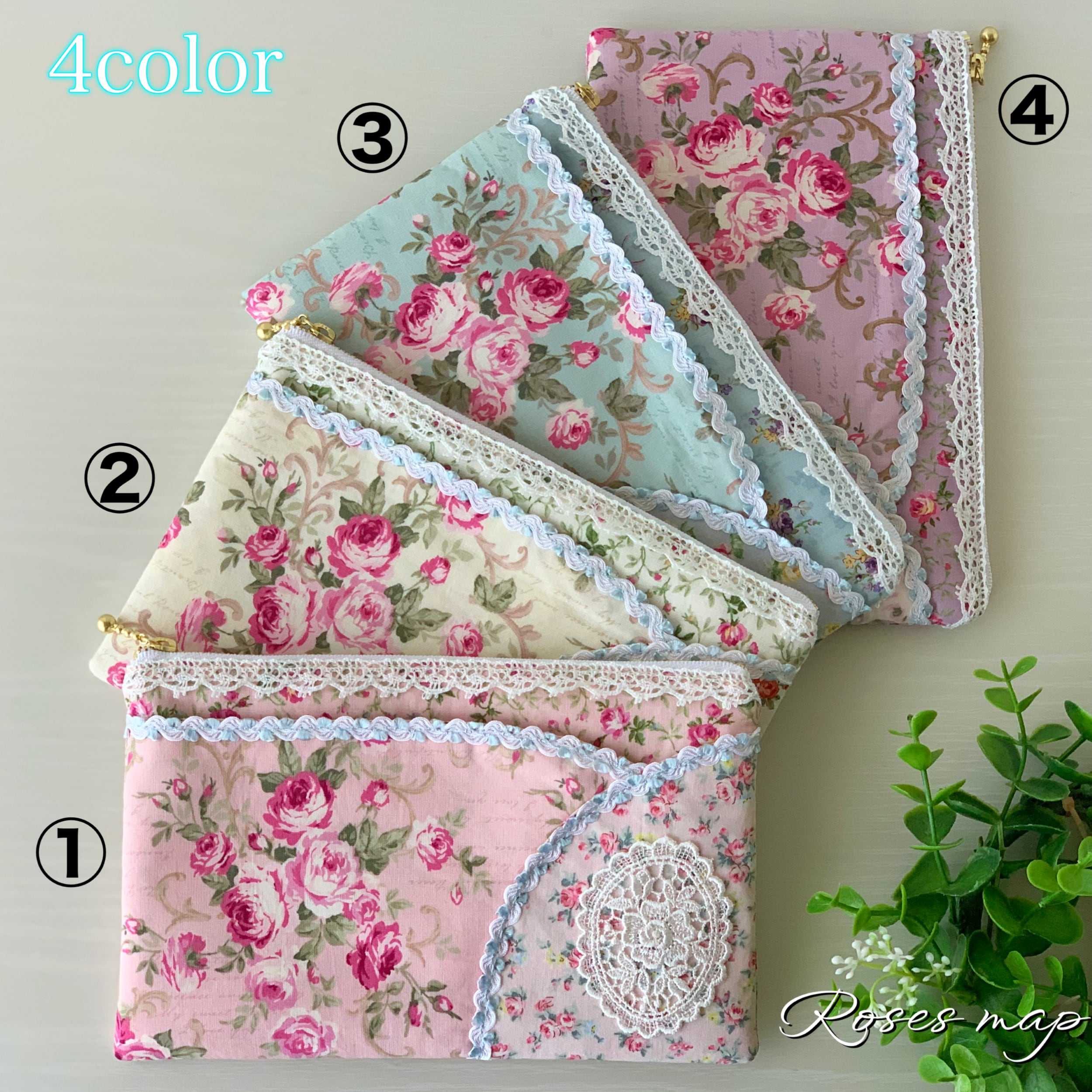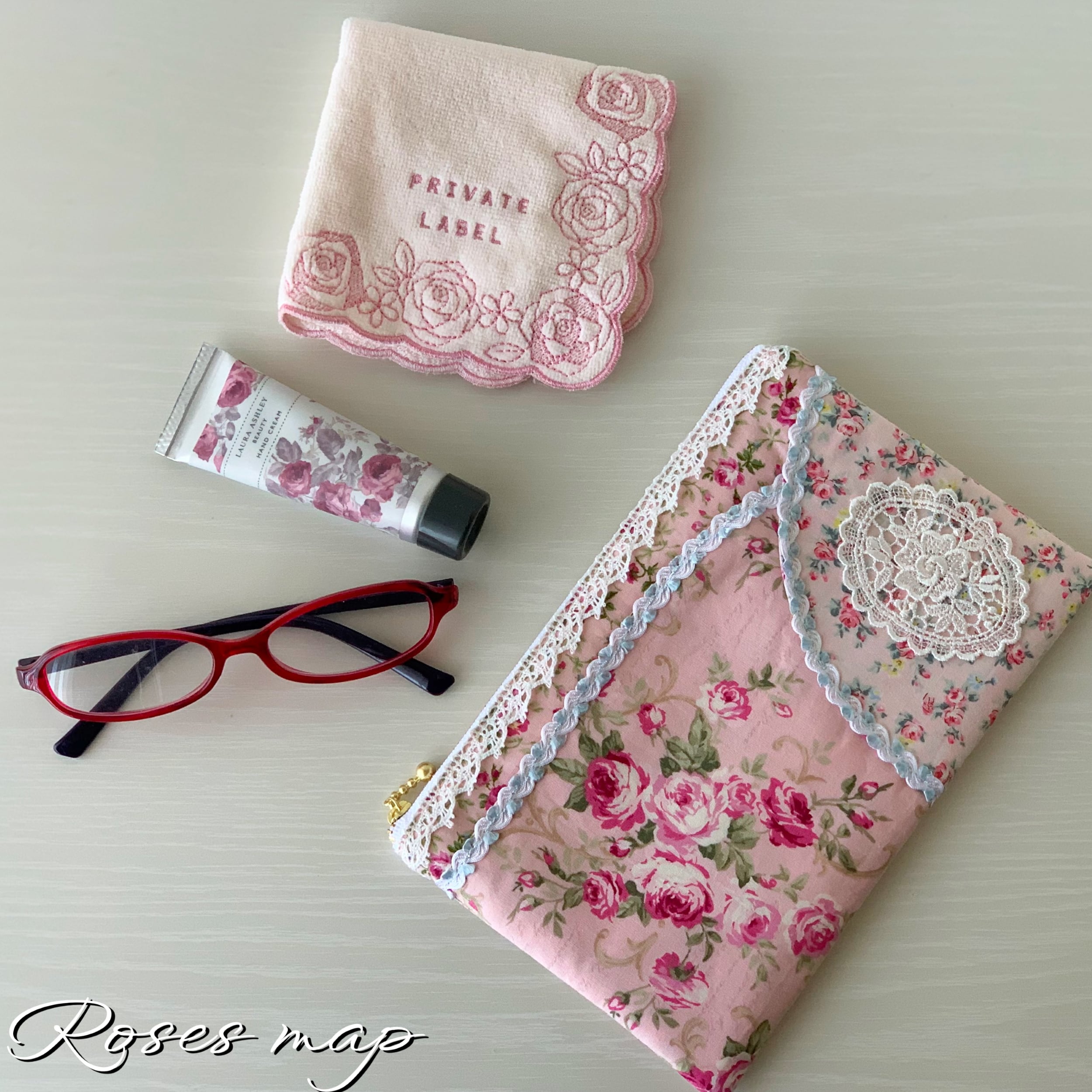 (PN-7)【ポーチ】外ポケット付 銀行用 通院用 通帳入れ 母子手帳入れ おしゃれ小物 薔薇小物 ローズ雑貨