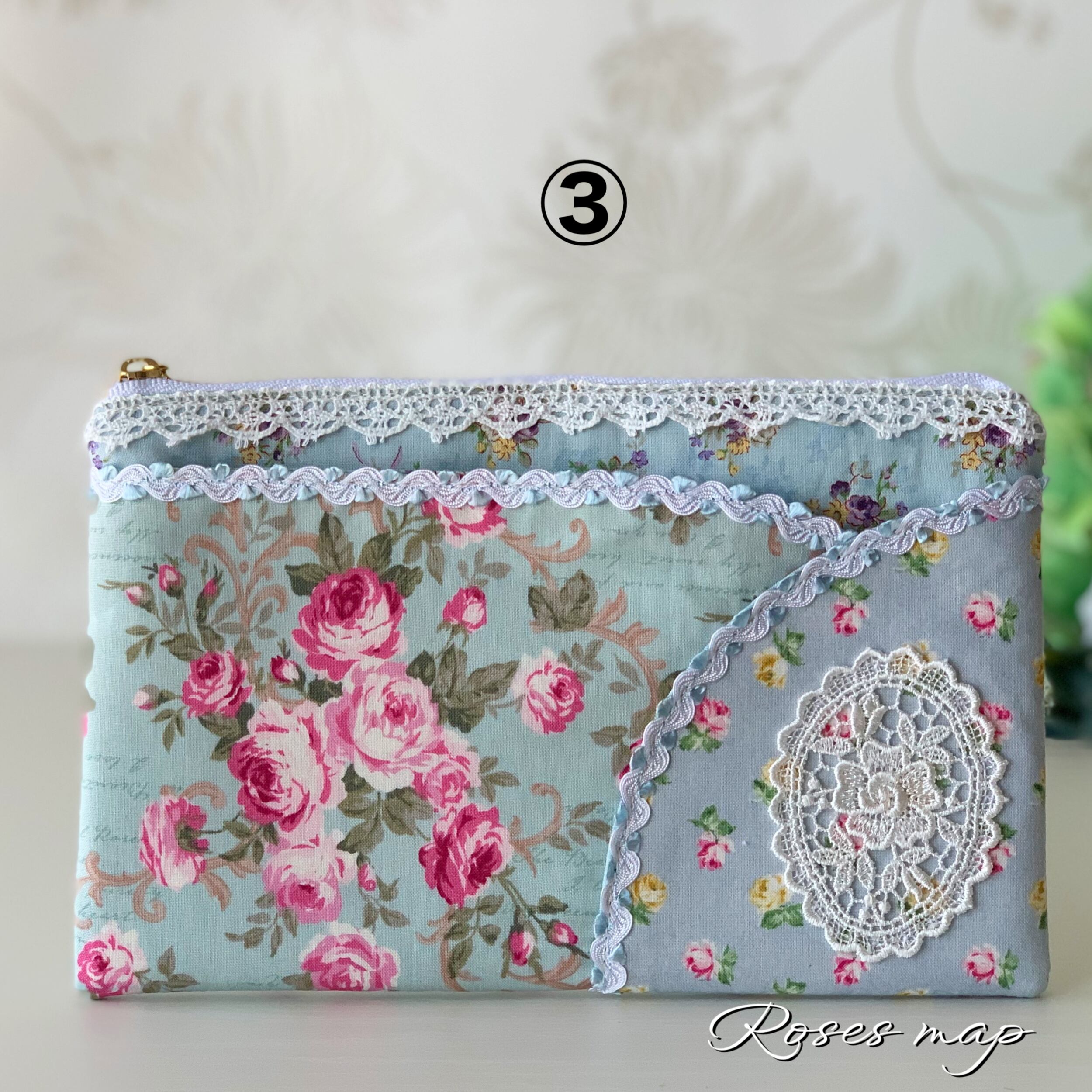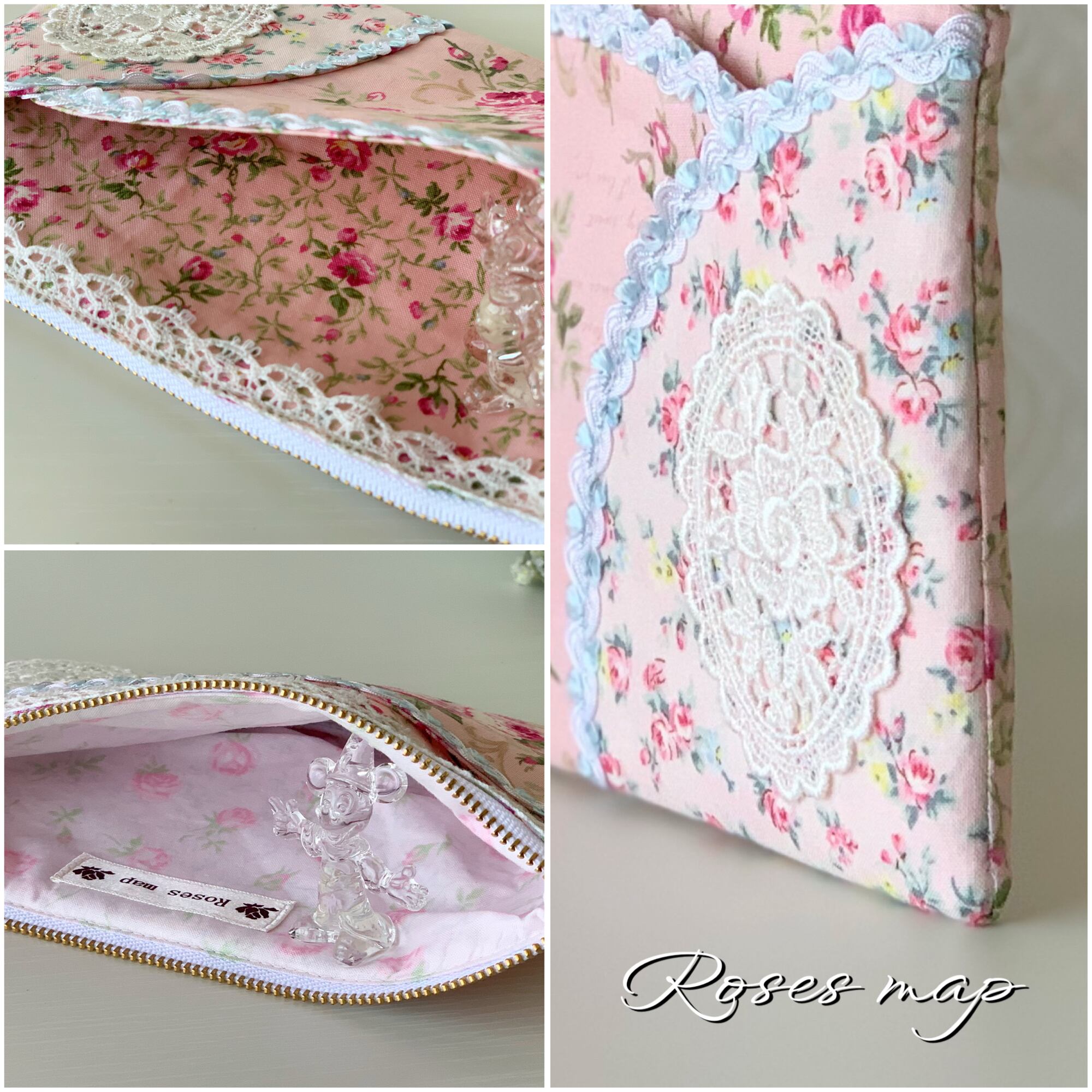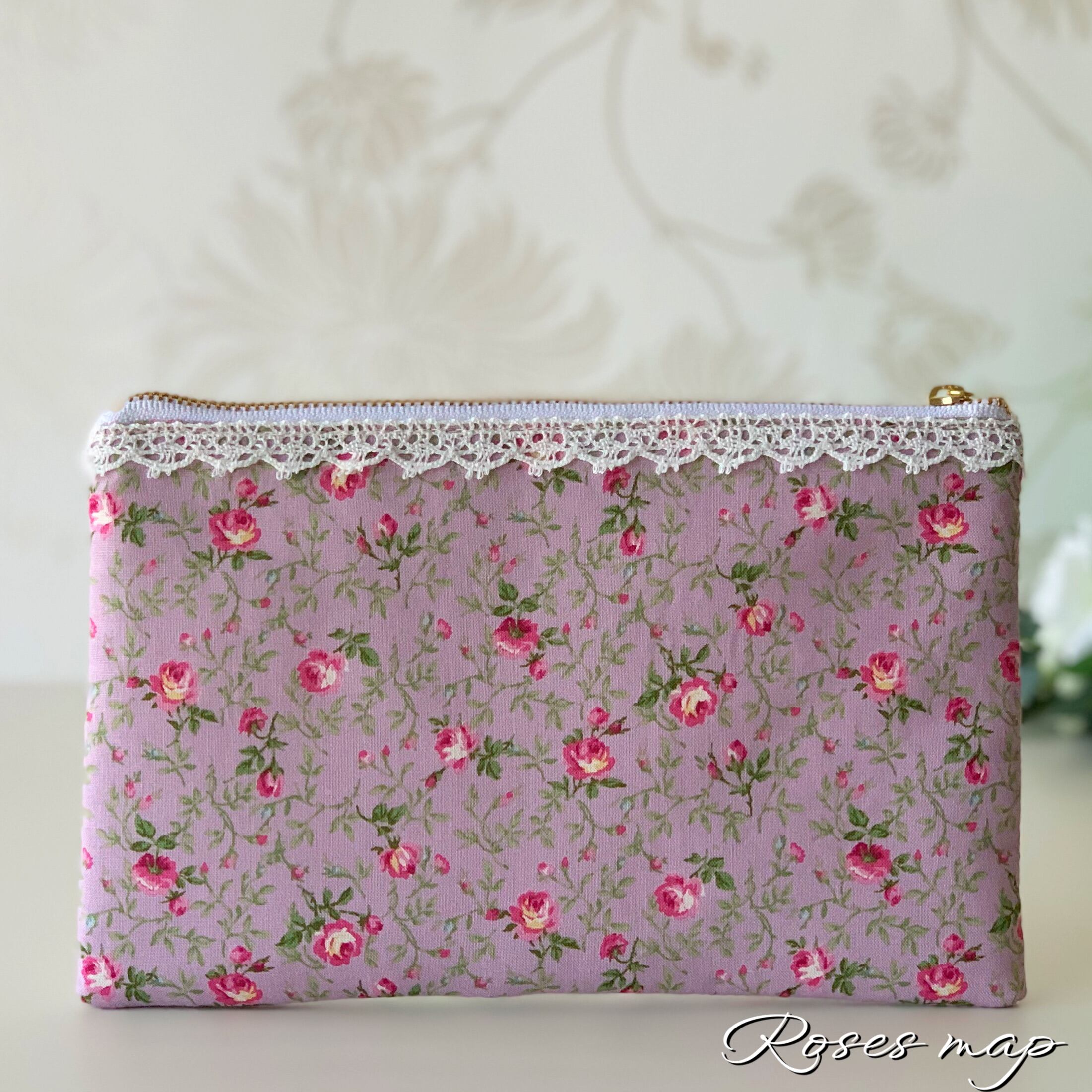 (PN-7)【ポーチ】外ポケット付 銀行用 通院用 通帳入れ 母子手帳入れ おしゃれ小物 薔薇小物 ローズ雑貨