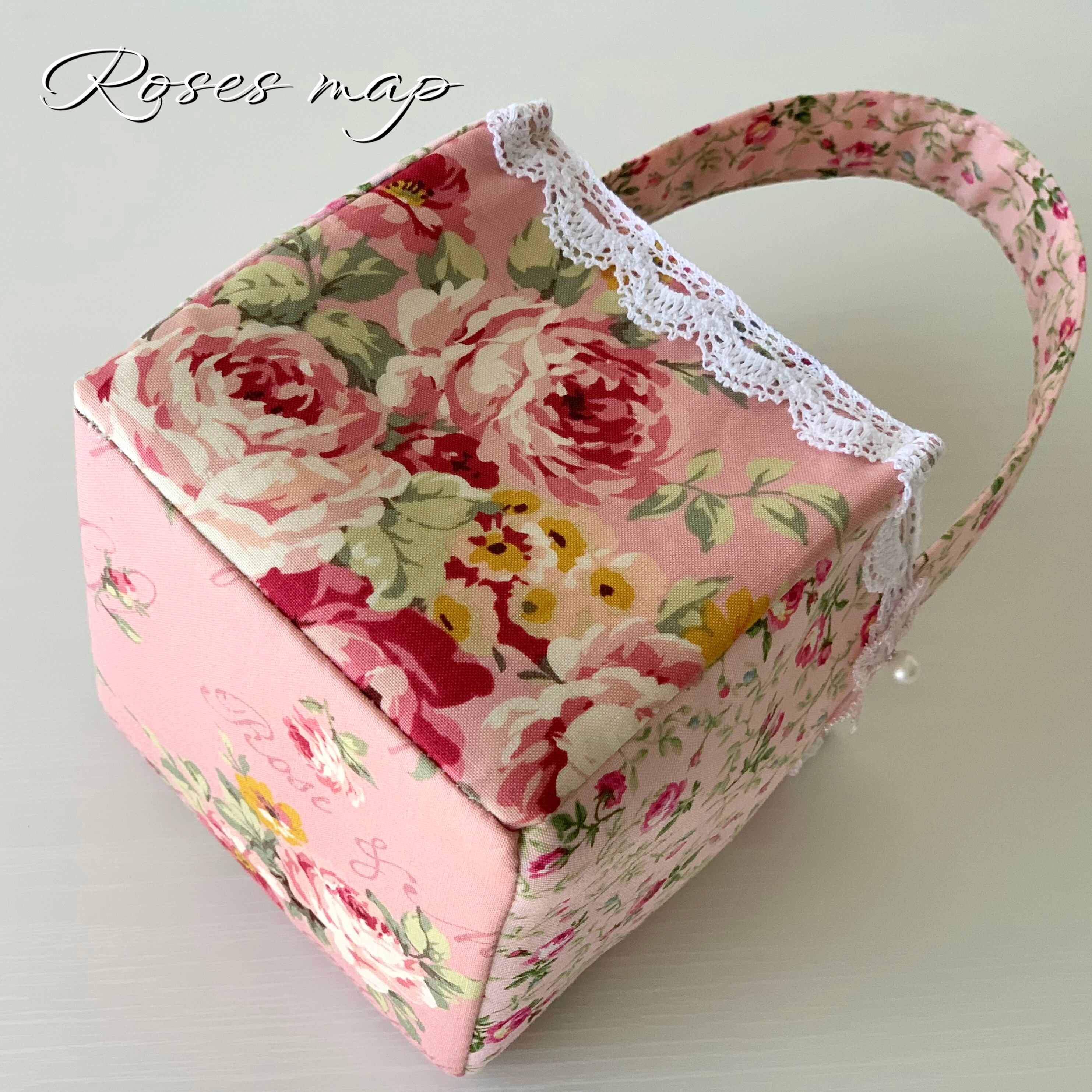 (IK-4)【小物入れ】取っ手付 収納 インテリア ボックス おしゃれ小物 薔薇小物 ローズ雑貨