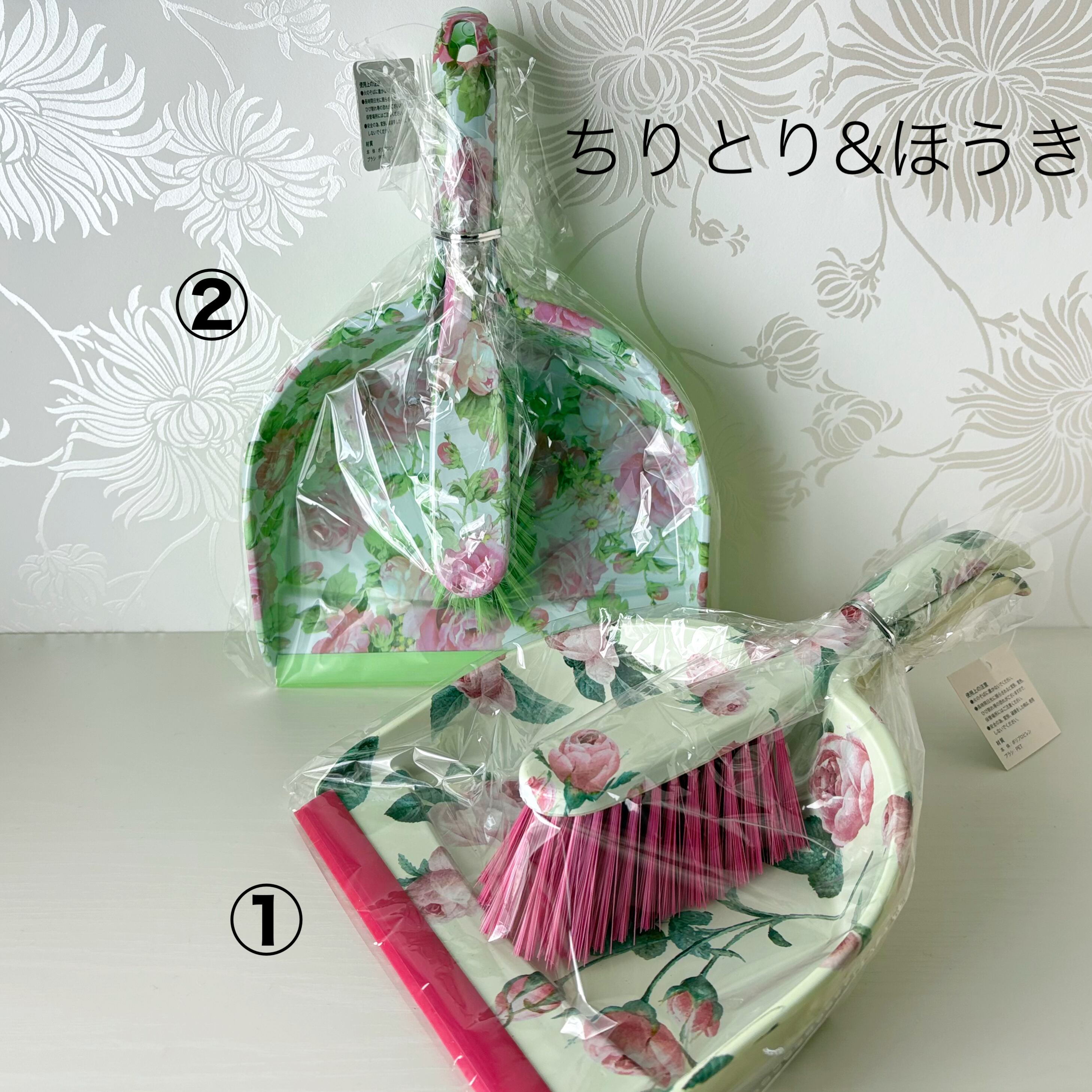 (Z-11)【ちりとり&ほうき】 掃除道具 薔薇 ローズ 花柄