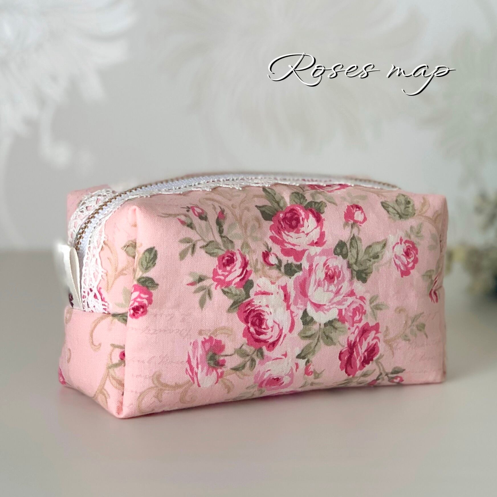 (PM-20)【ポーチ マチ付】ボックス型 おしゃれ小物 薔薇小物 ローズ雑貨
