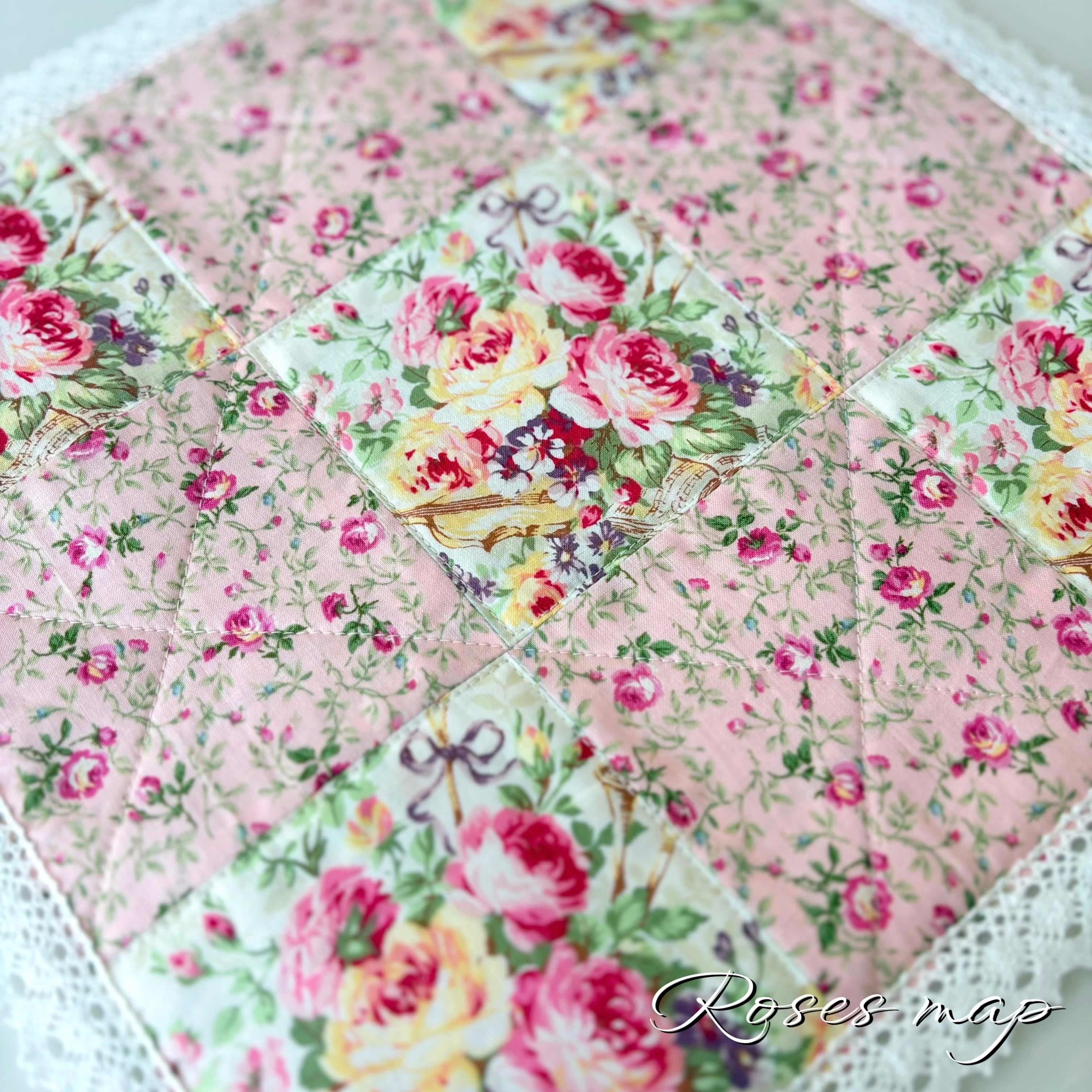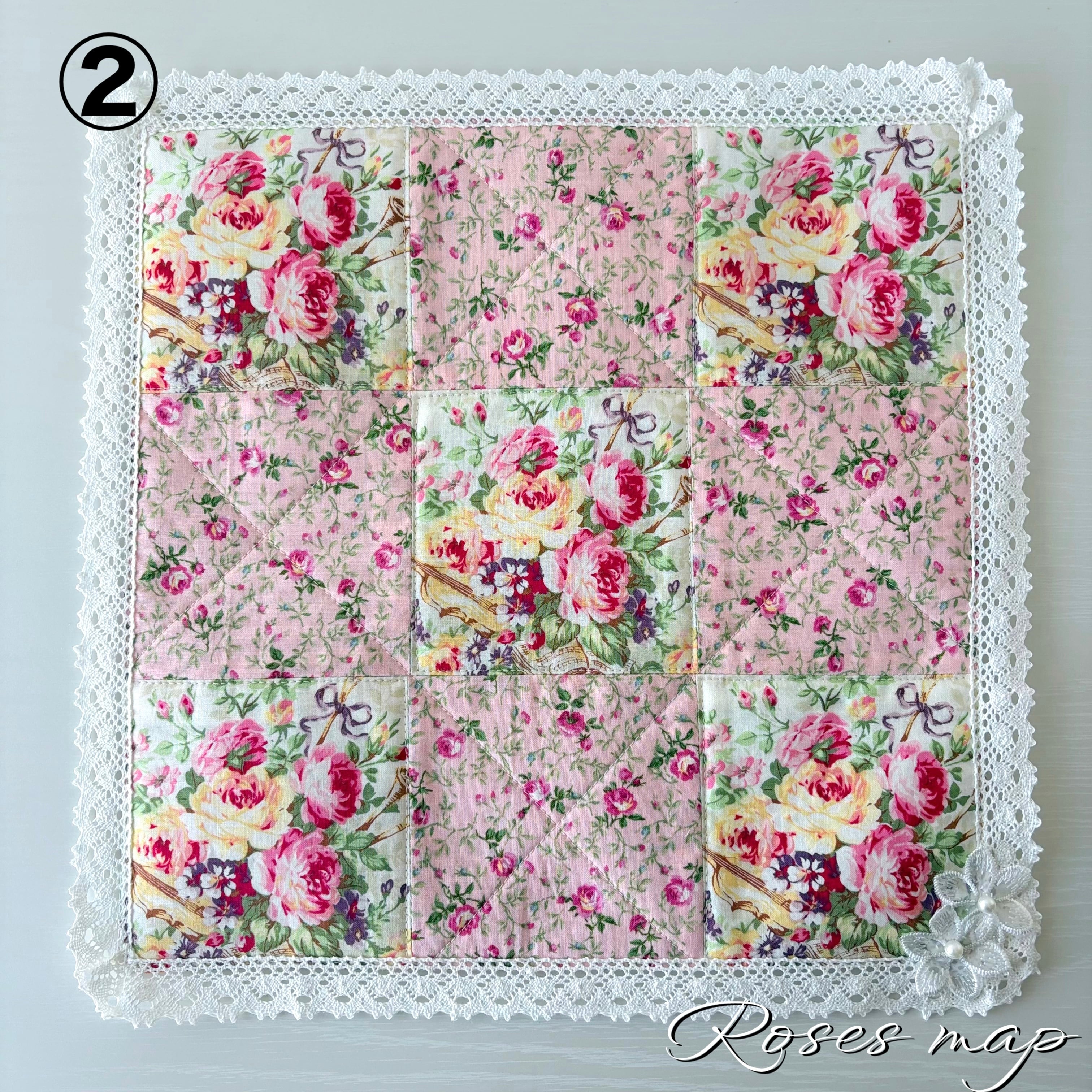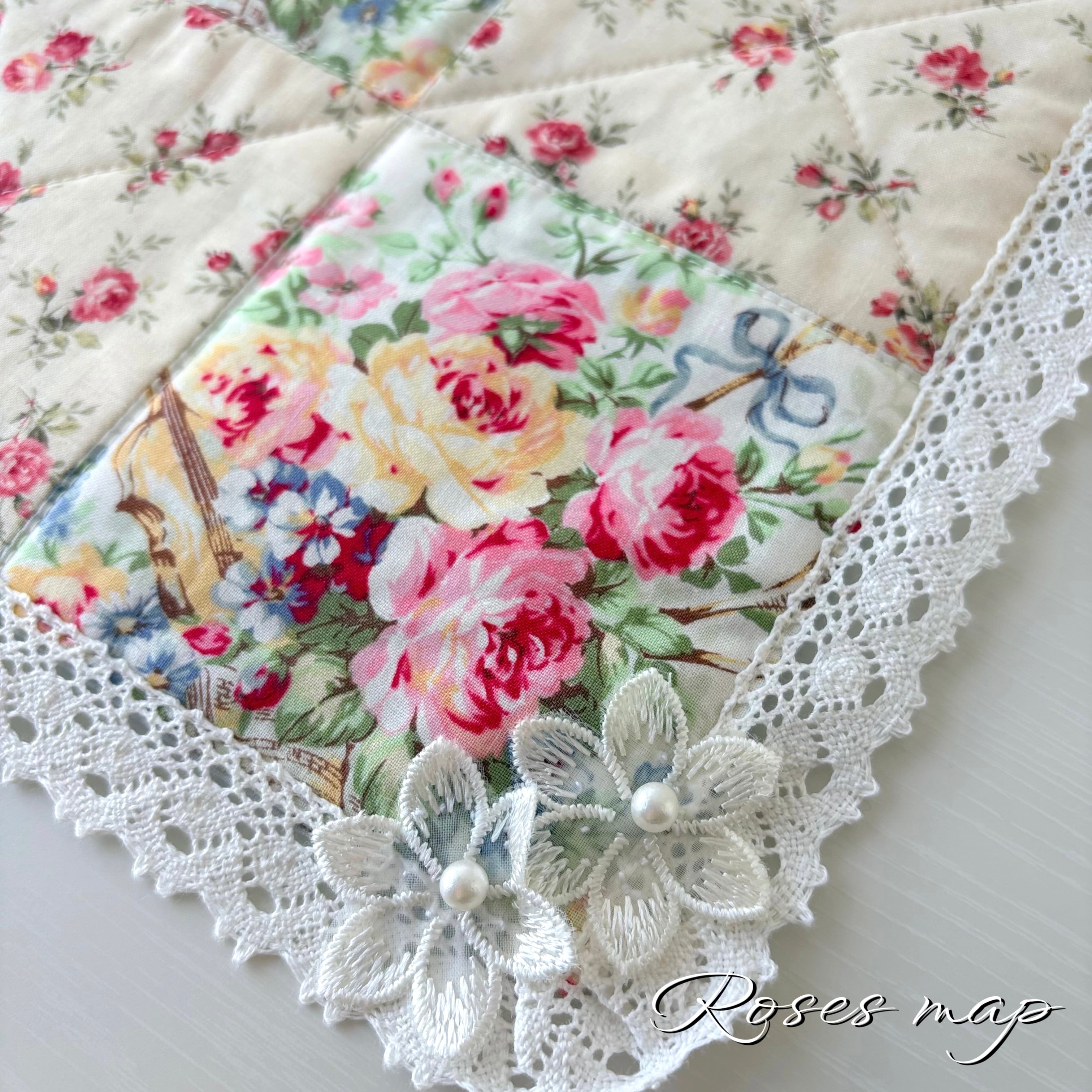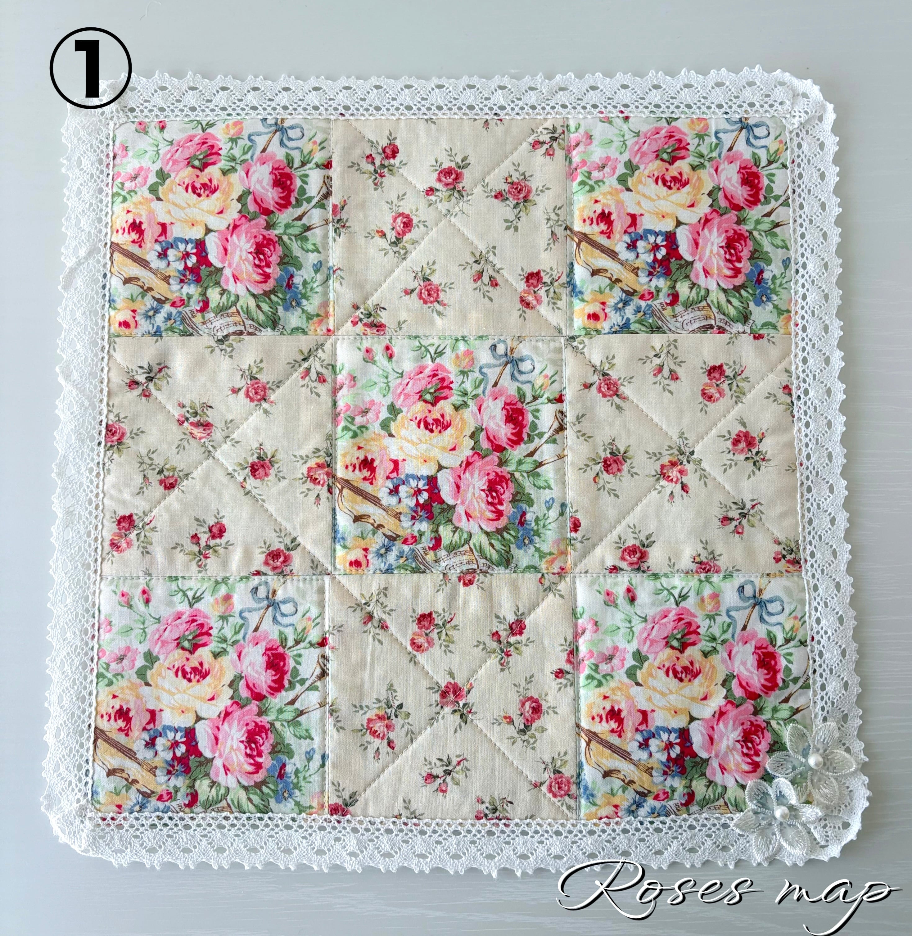(IM-17)【マット】インテリア パッチワーク おしゃれ小物 薔薇小物 ローズ雑貨