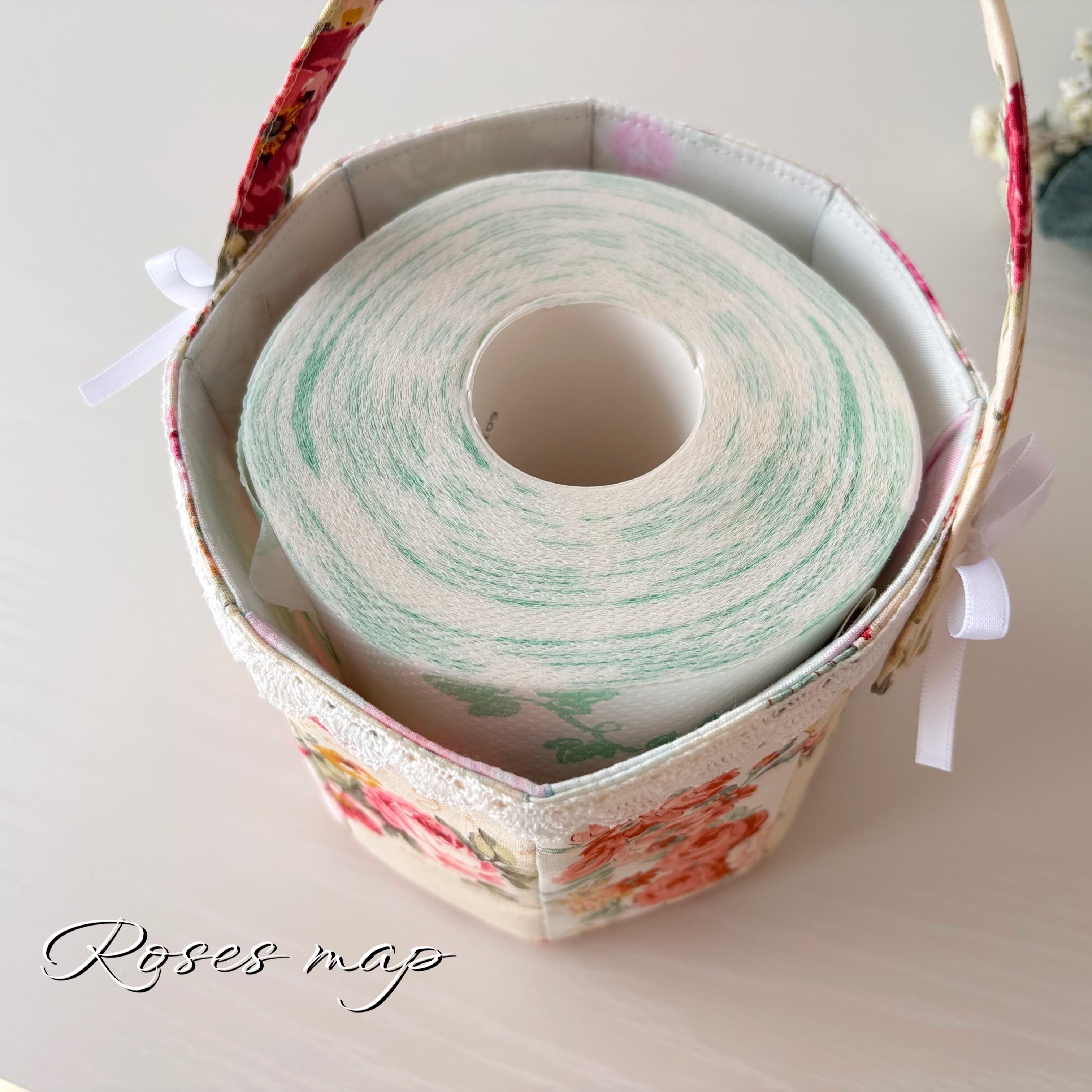ちょうどトイレットペーパーがすっぽり入る大きさです。