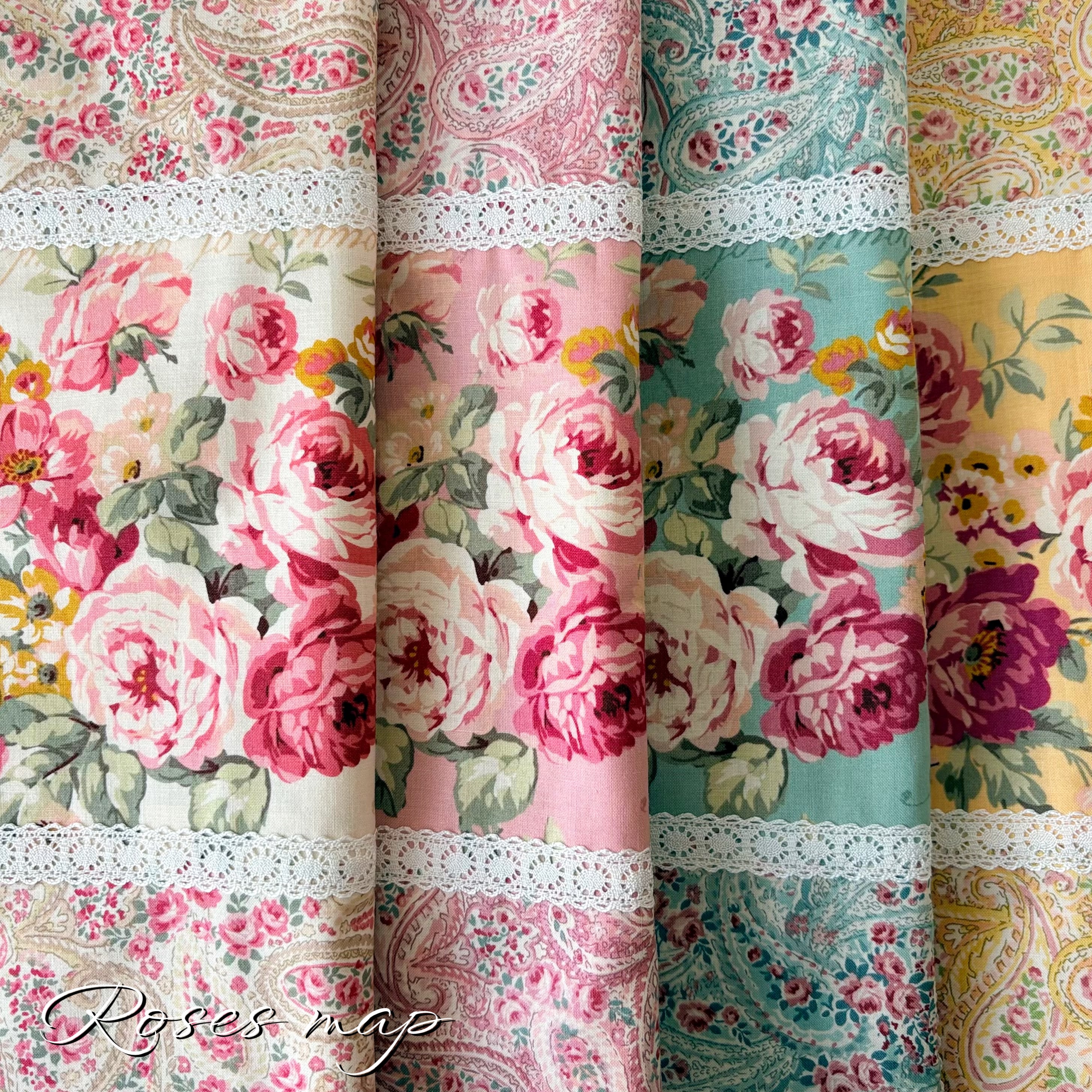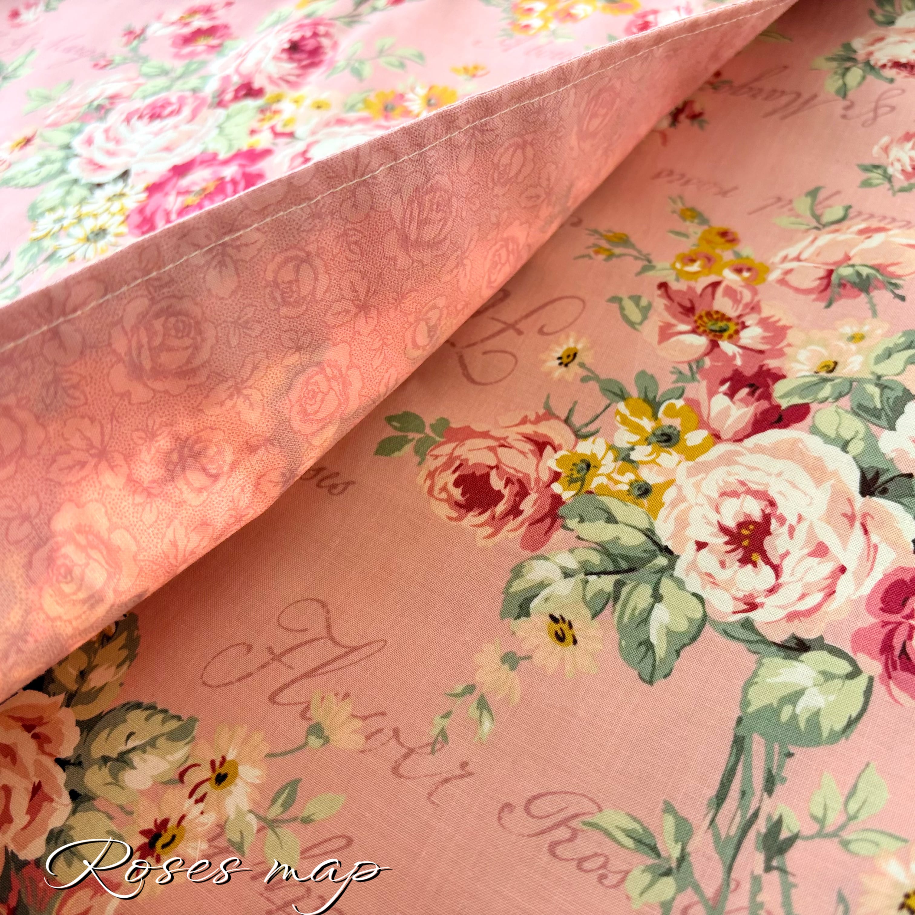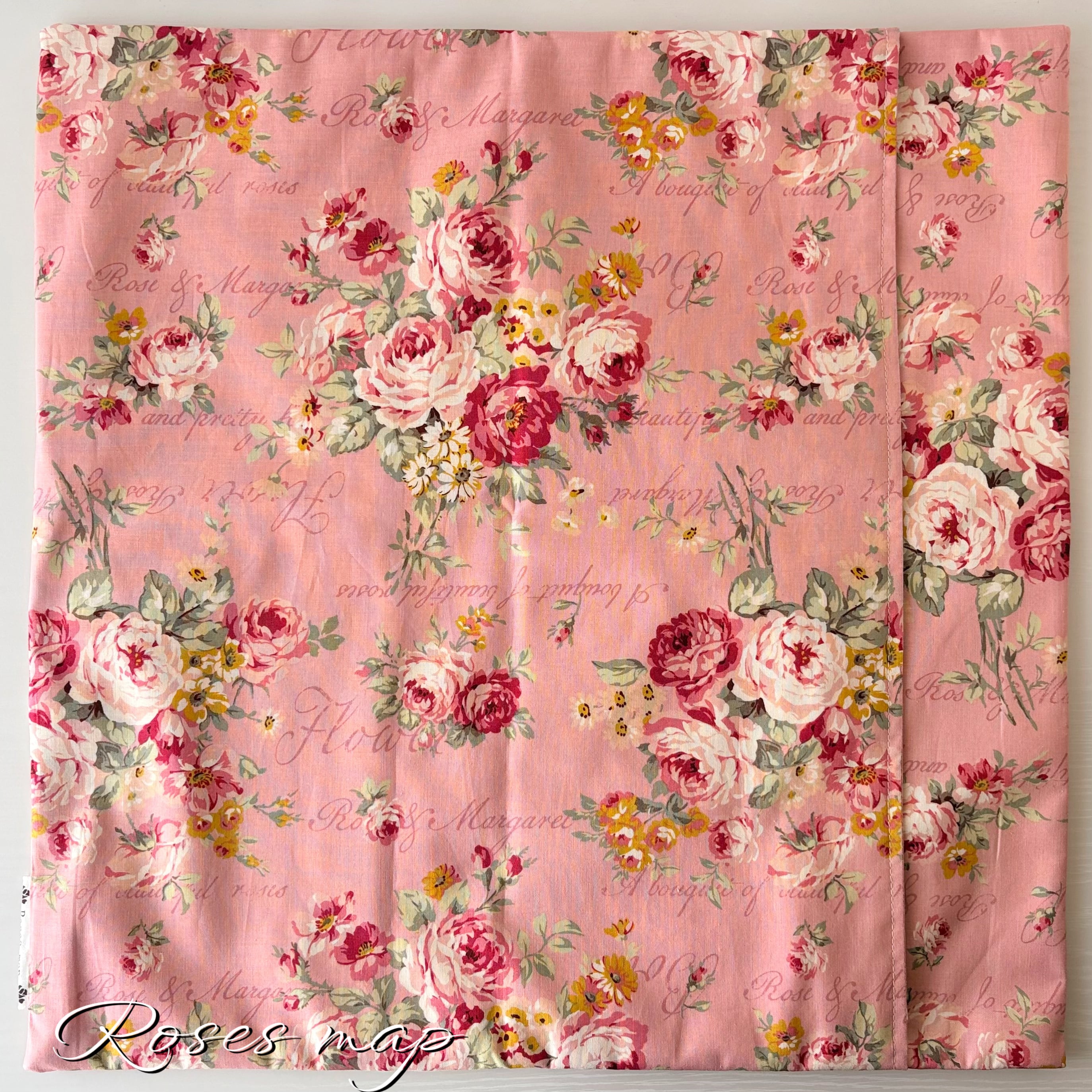 異なる薔薇柄を丁寧に組み合わせた、上品で華やかなクッションカバーです。
