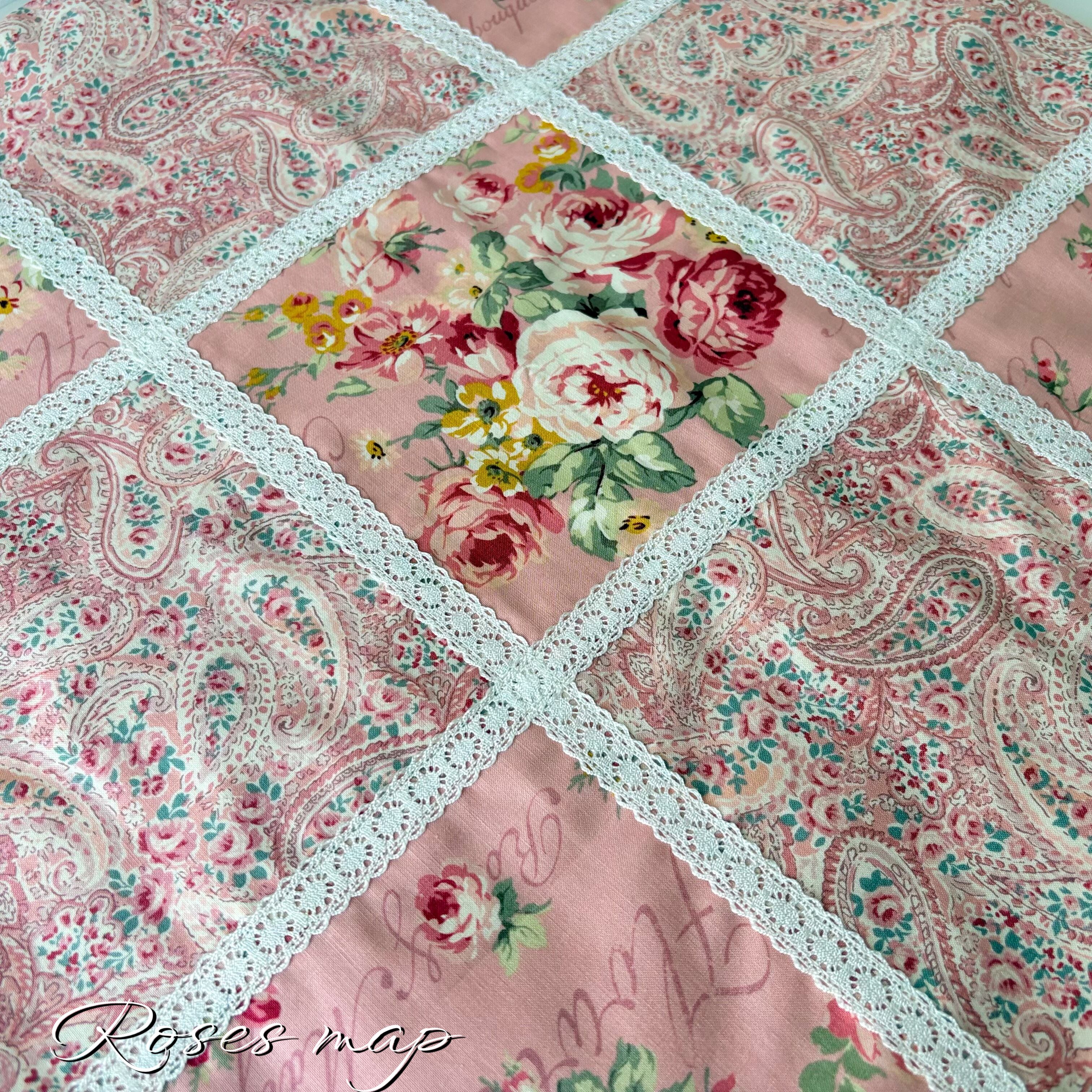 (IS-14)【クッションカバー】パッチワーク インテリア おしゃれ小物 薔薇小物 ローズ雑貨 ピンク