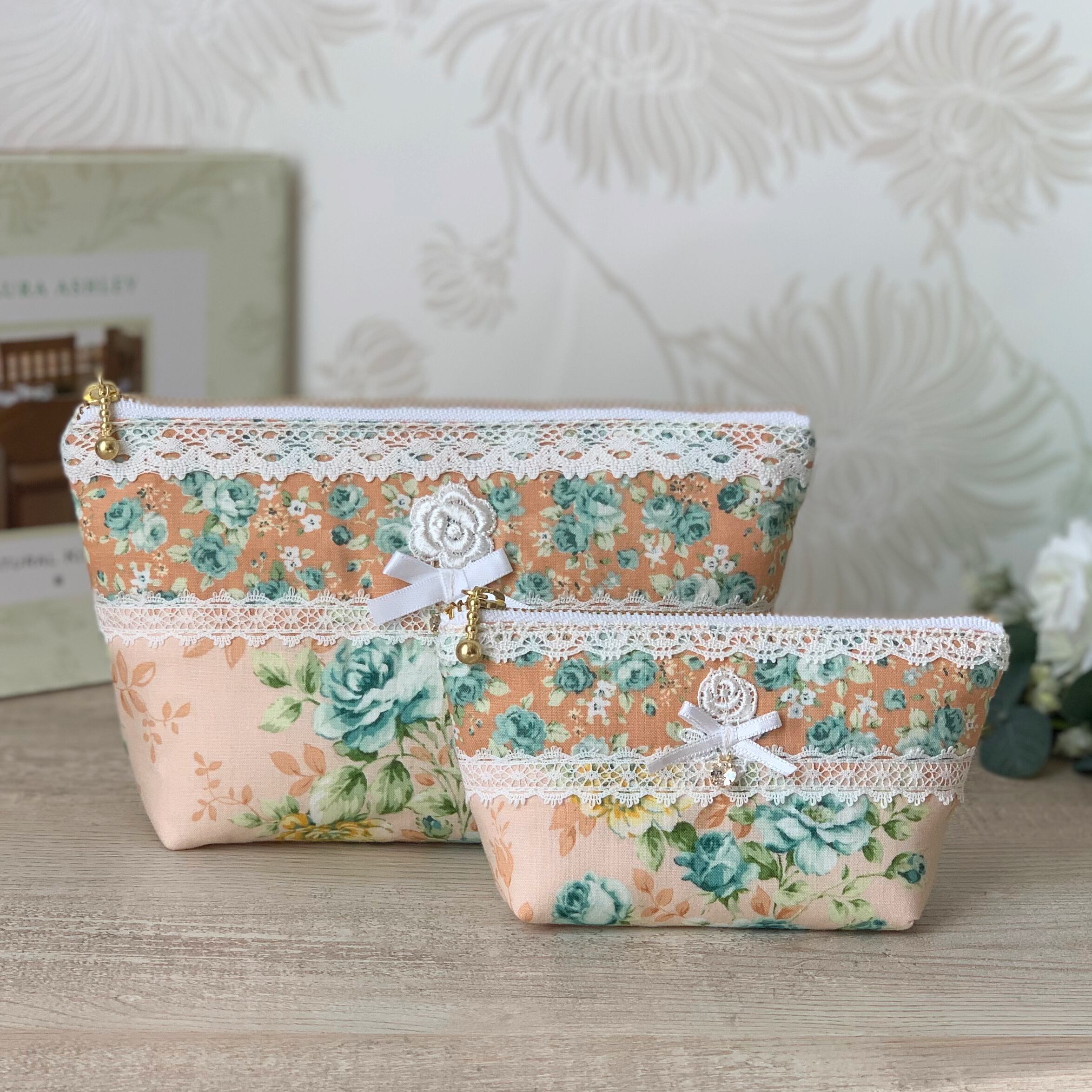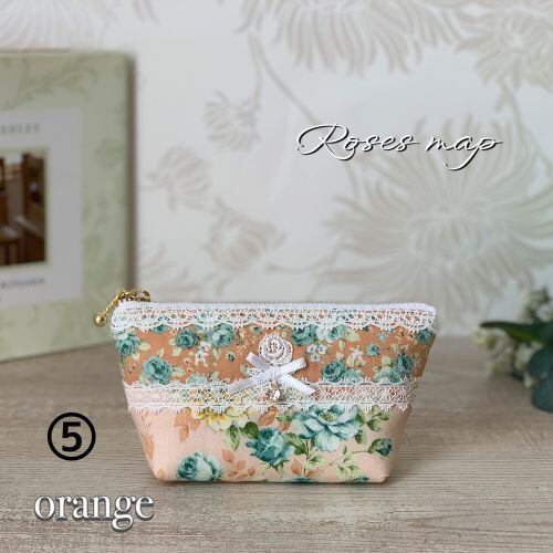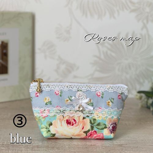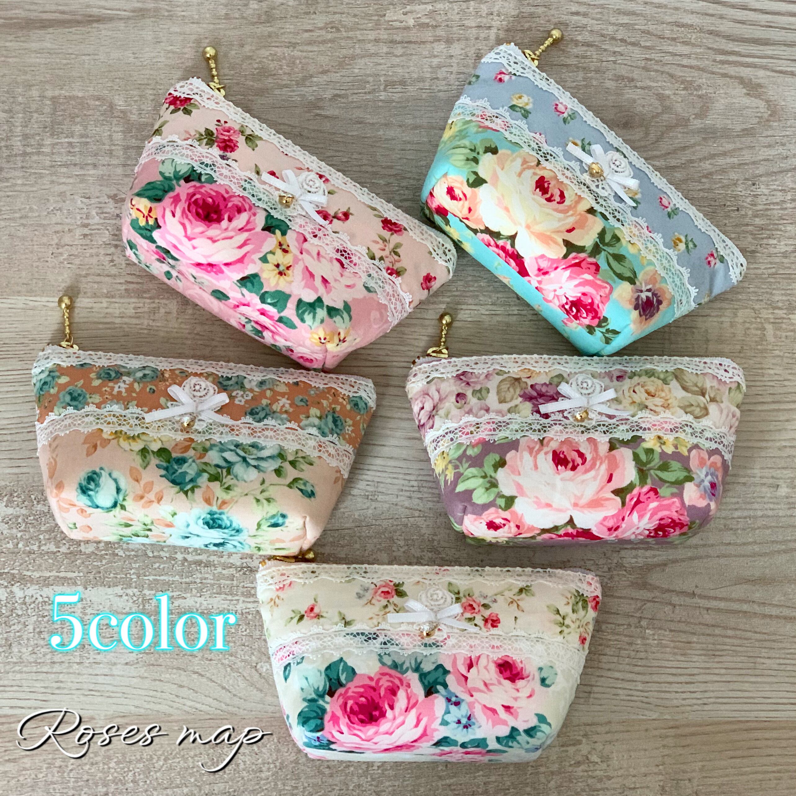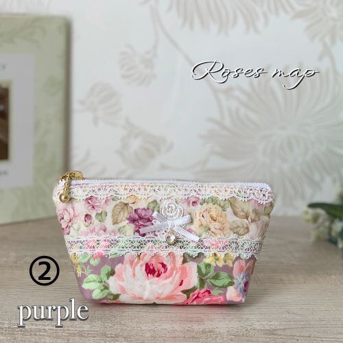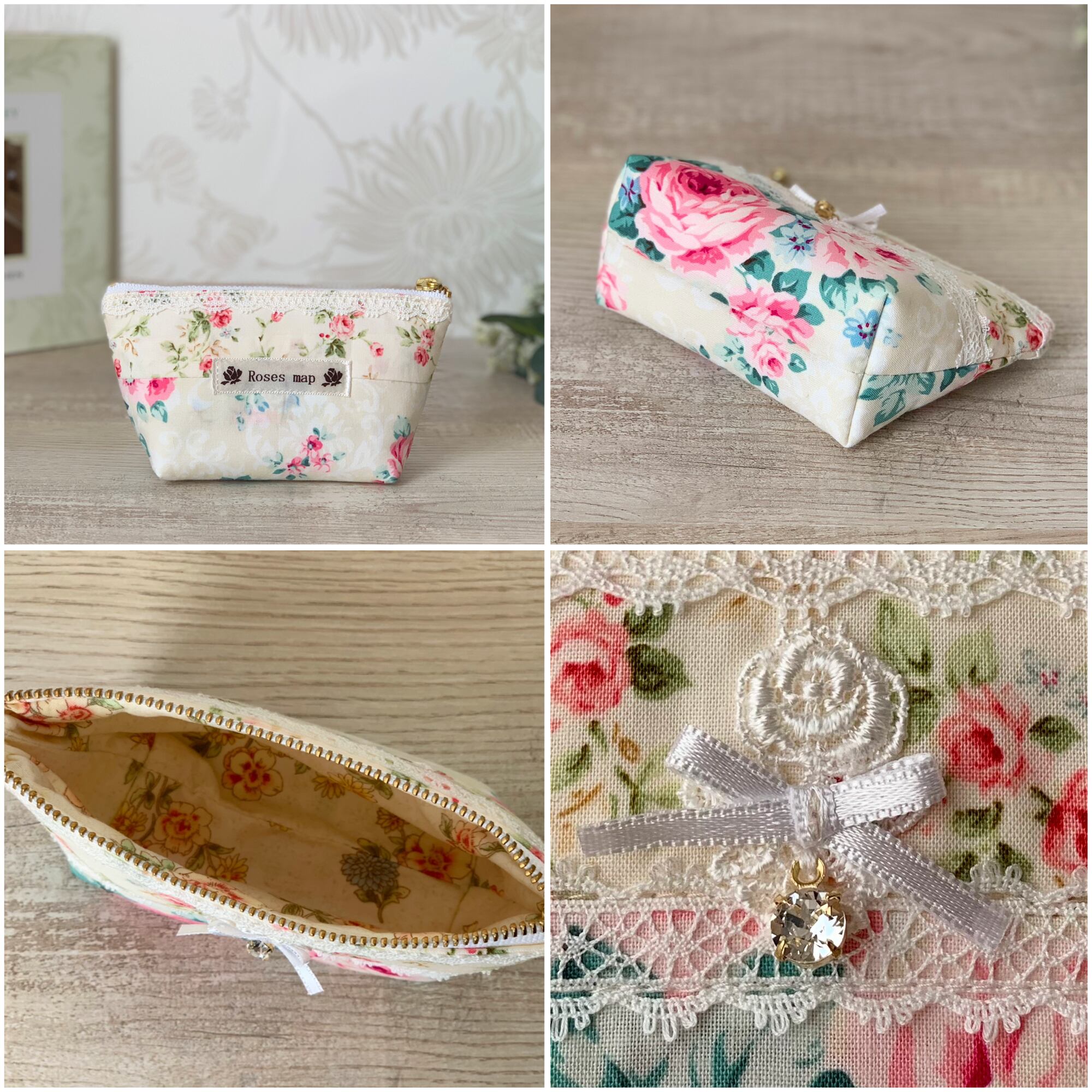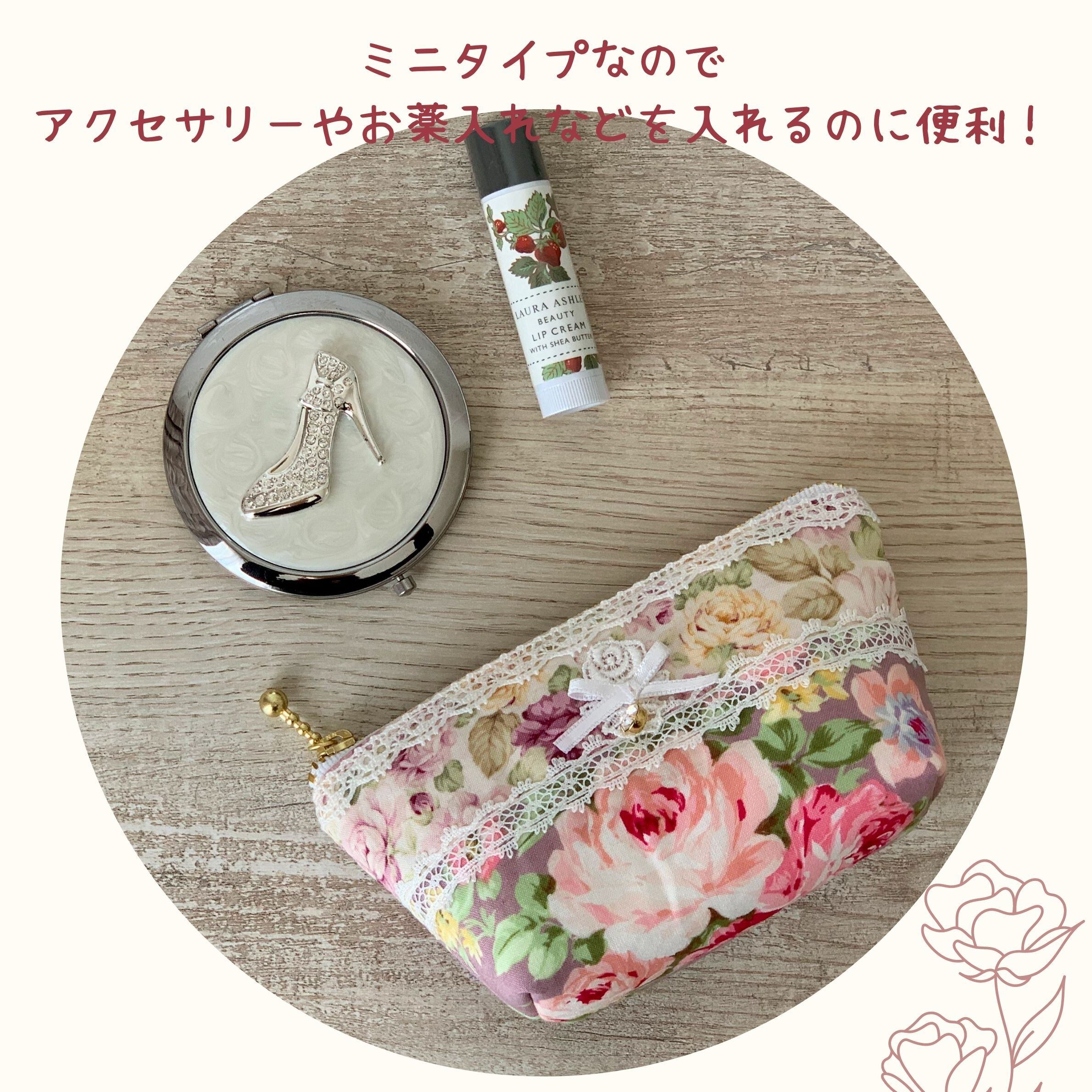 (PM-29)【ポーチ マチ付】ミニサイズ スワロフスキーとお花モチーフ コンパクト おしゃれ小物 薔薇小物 ローズ雑貨