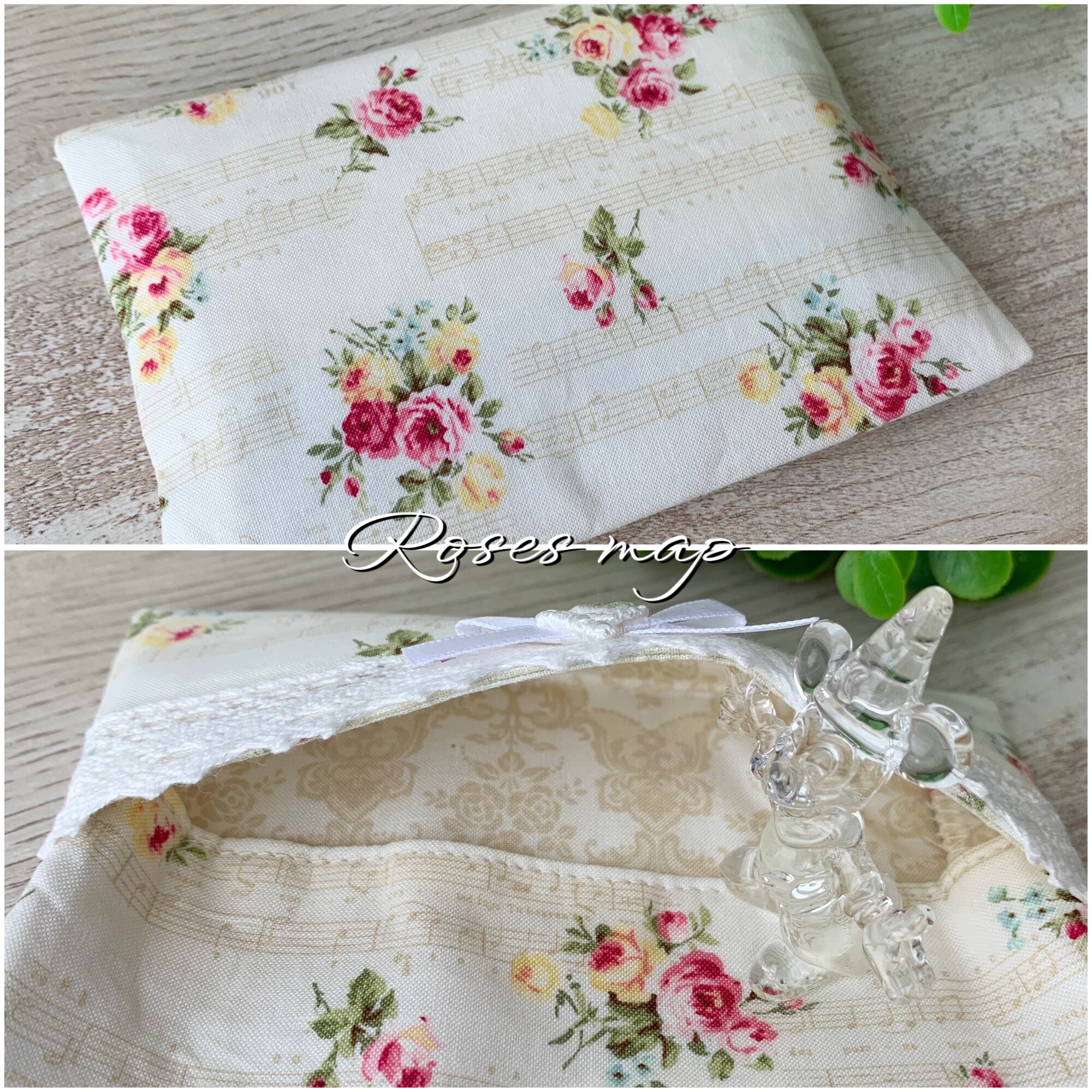 接着芯を貼ってしっかり、中生地も薔薇柄。