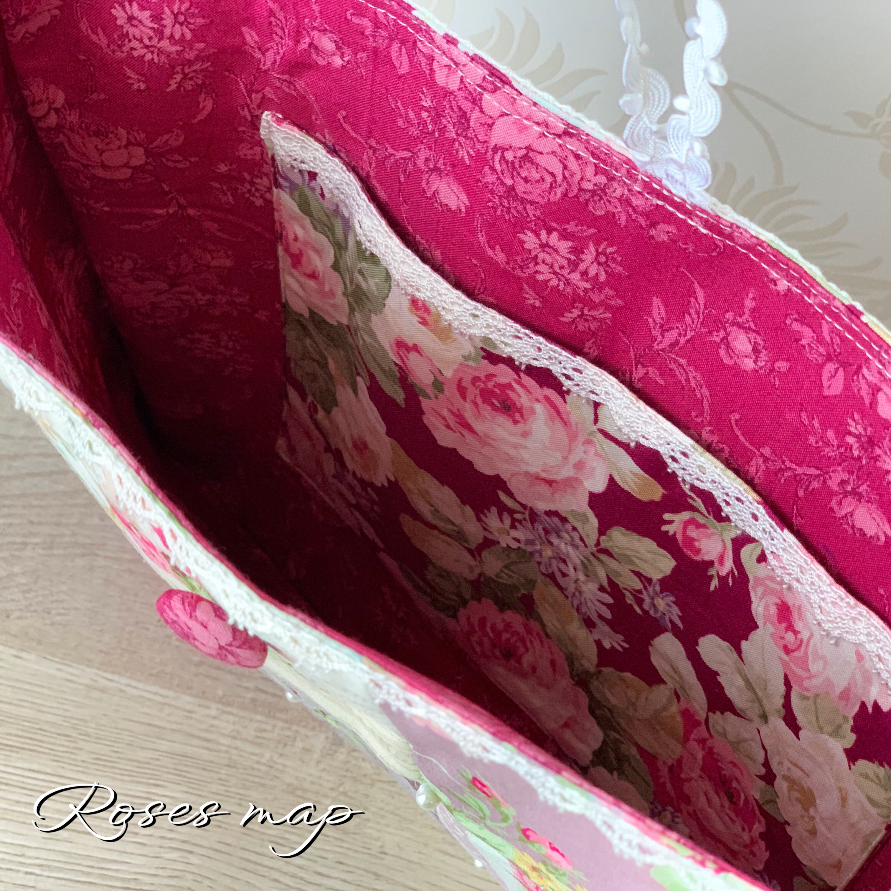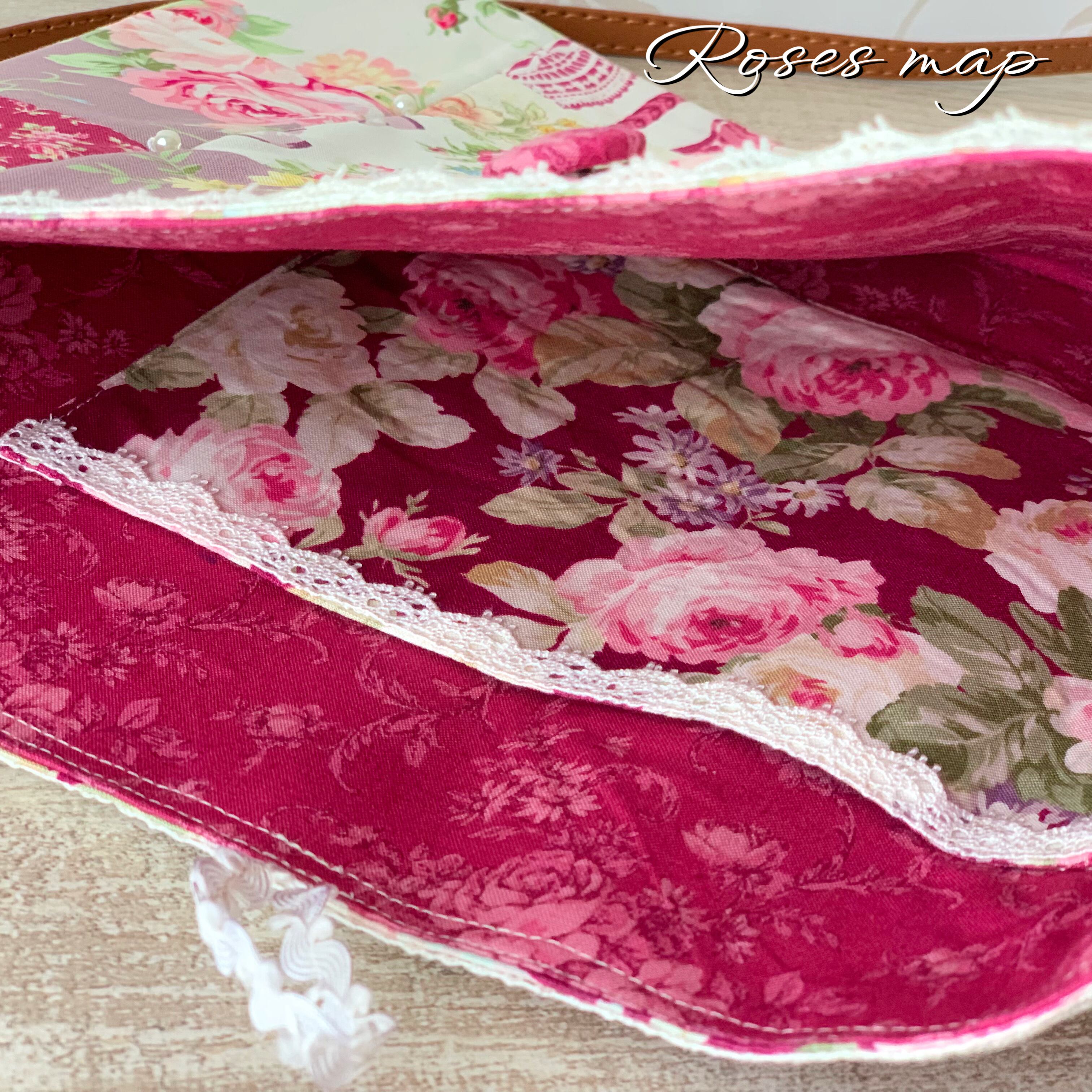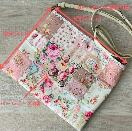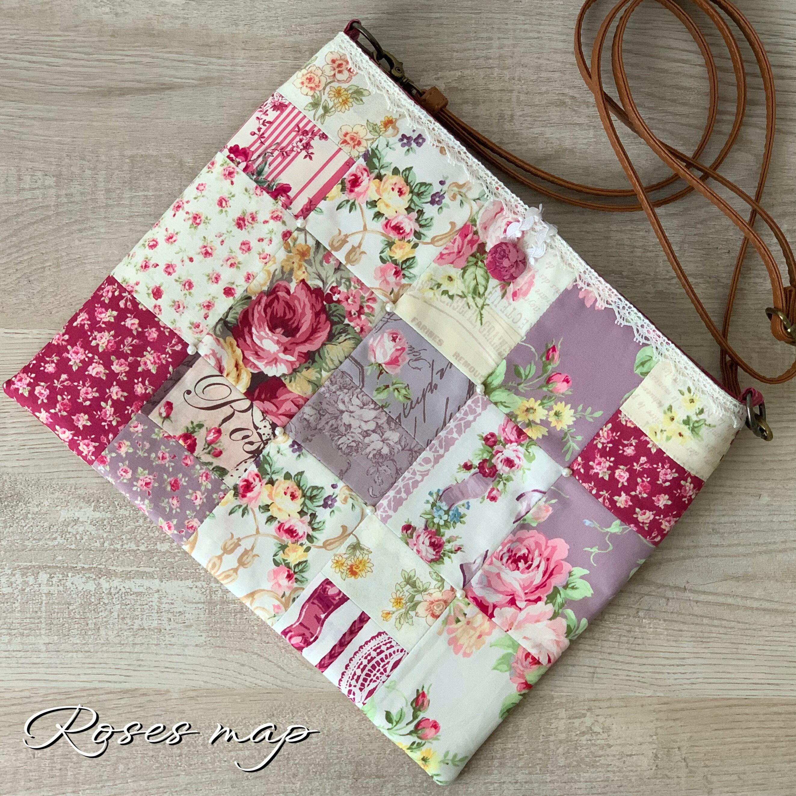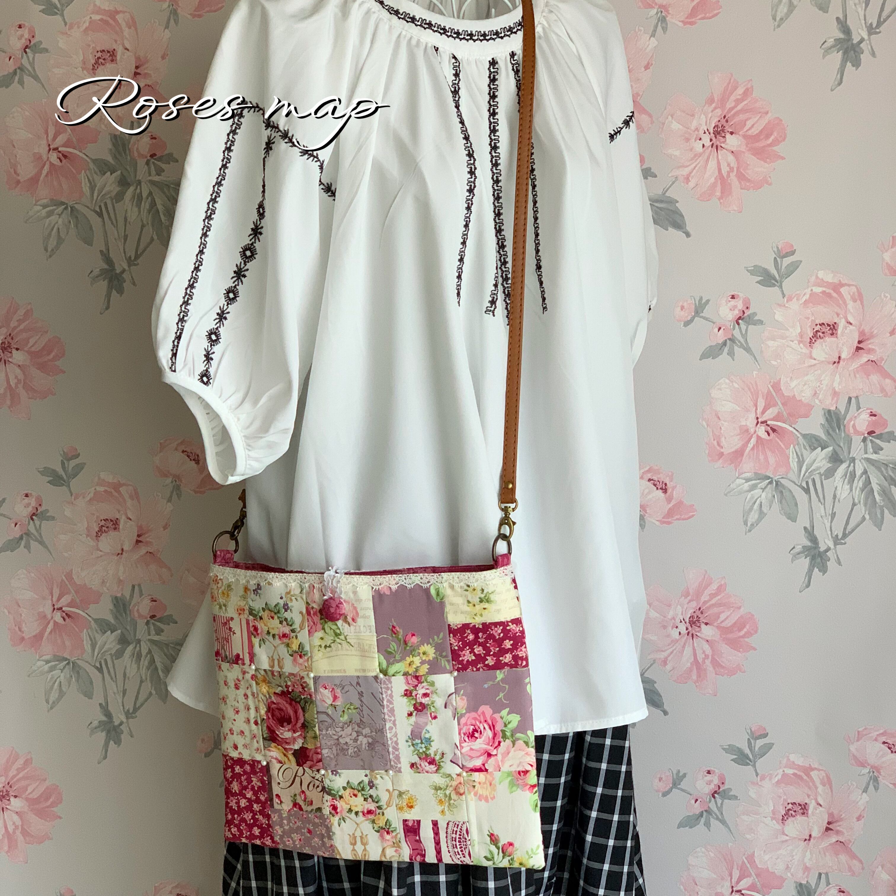 (BS-1)【バッグ】サコッシュ 斜めがけ ショルダー パッチワークデザイン おしゃれ小物 薔薇小物 ローズ雑貨