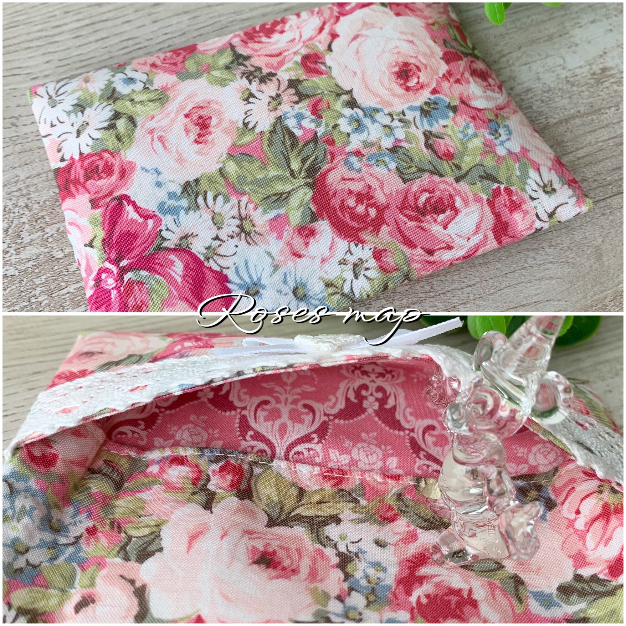 接着芯を貼ってしっかり、中生地も薔薇柄。