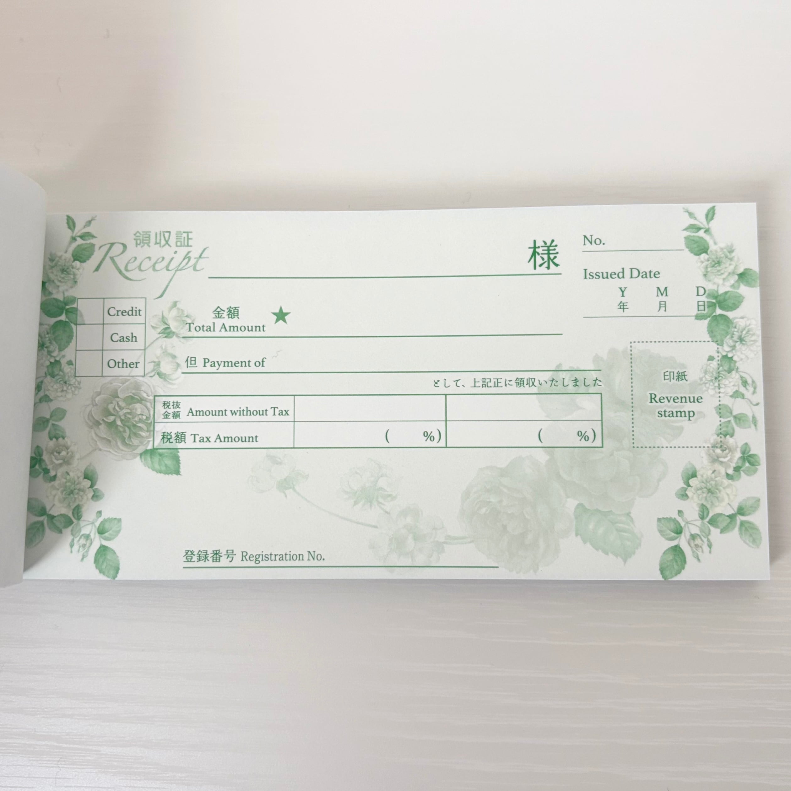 (Z-23)【領収書】人気!受け取って嬉しい柄入り 軽減税率対応 薔薇 ローズ 花柄