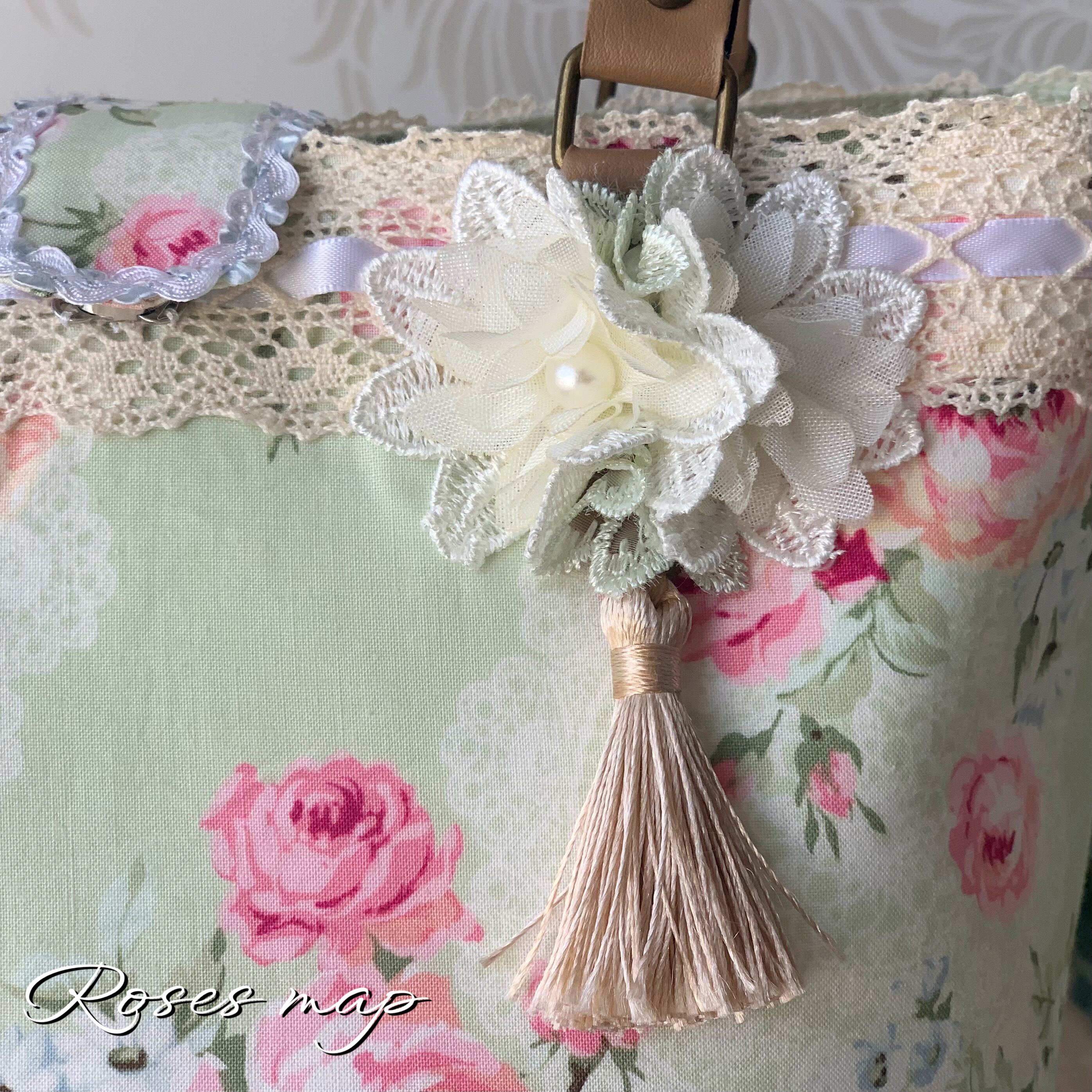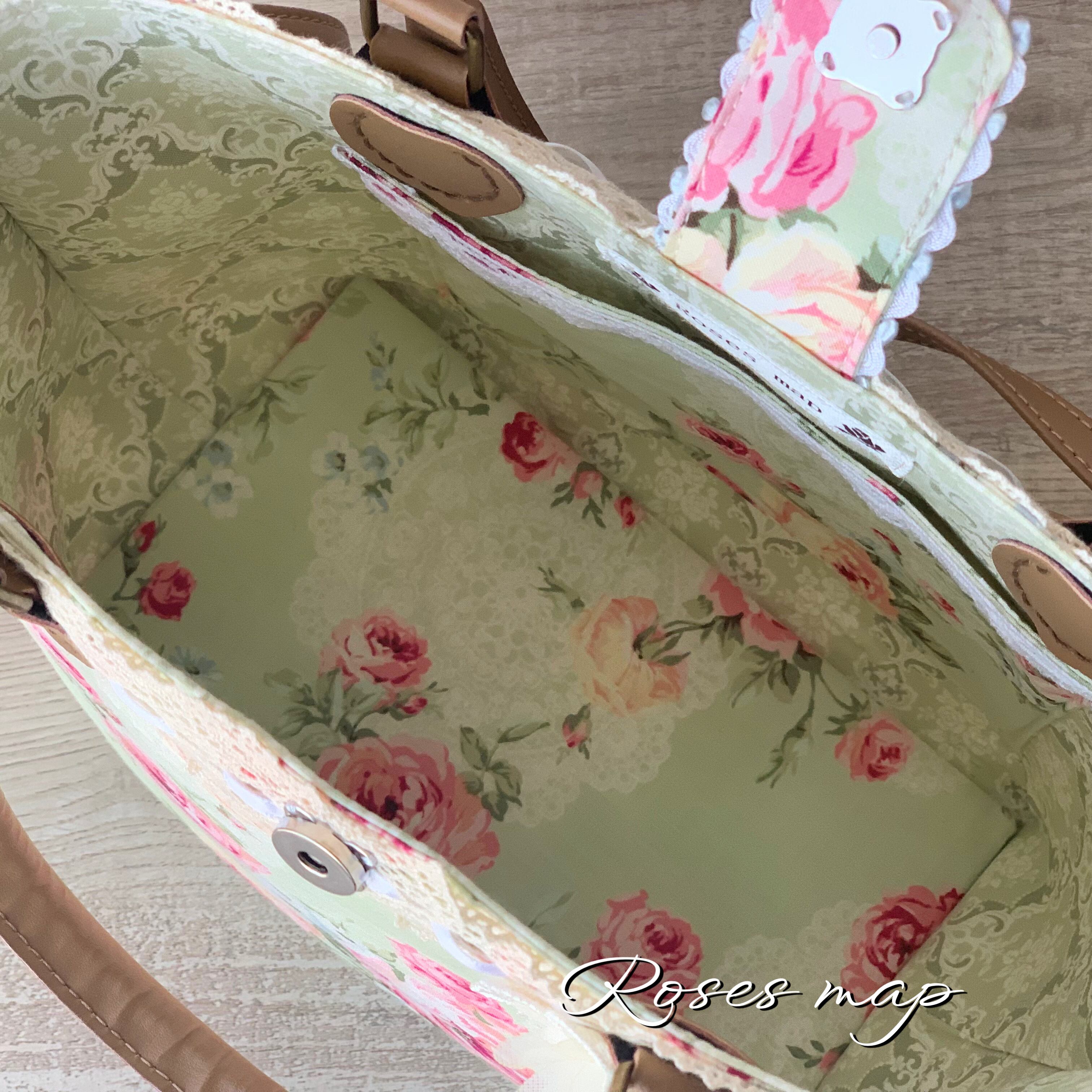美しい薔薇柄にお花モチーフが可愛らしい、ショッピングやお散歩に最適なバッグ。