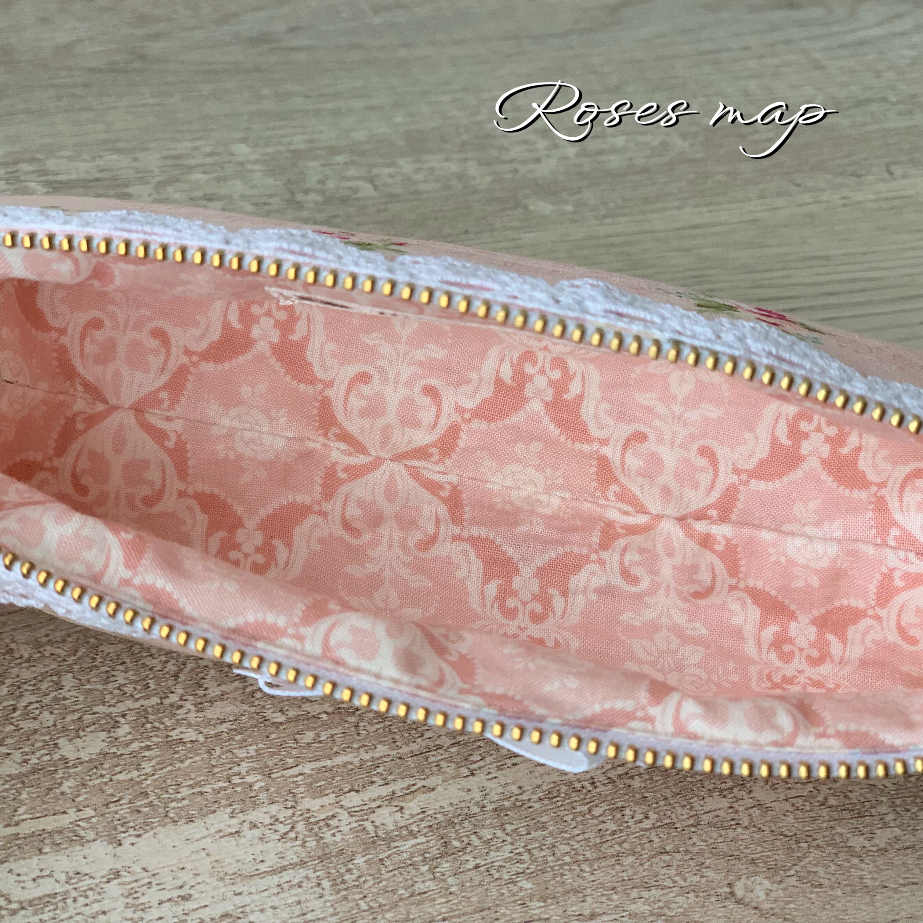 ①2450-14Aの生地で(O-18)ポケットいっぱい 横長ファスナーバッグ