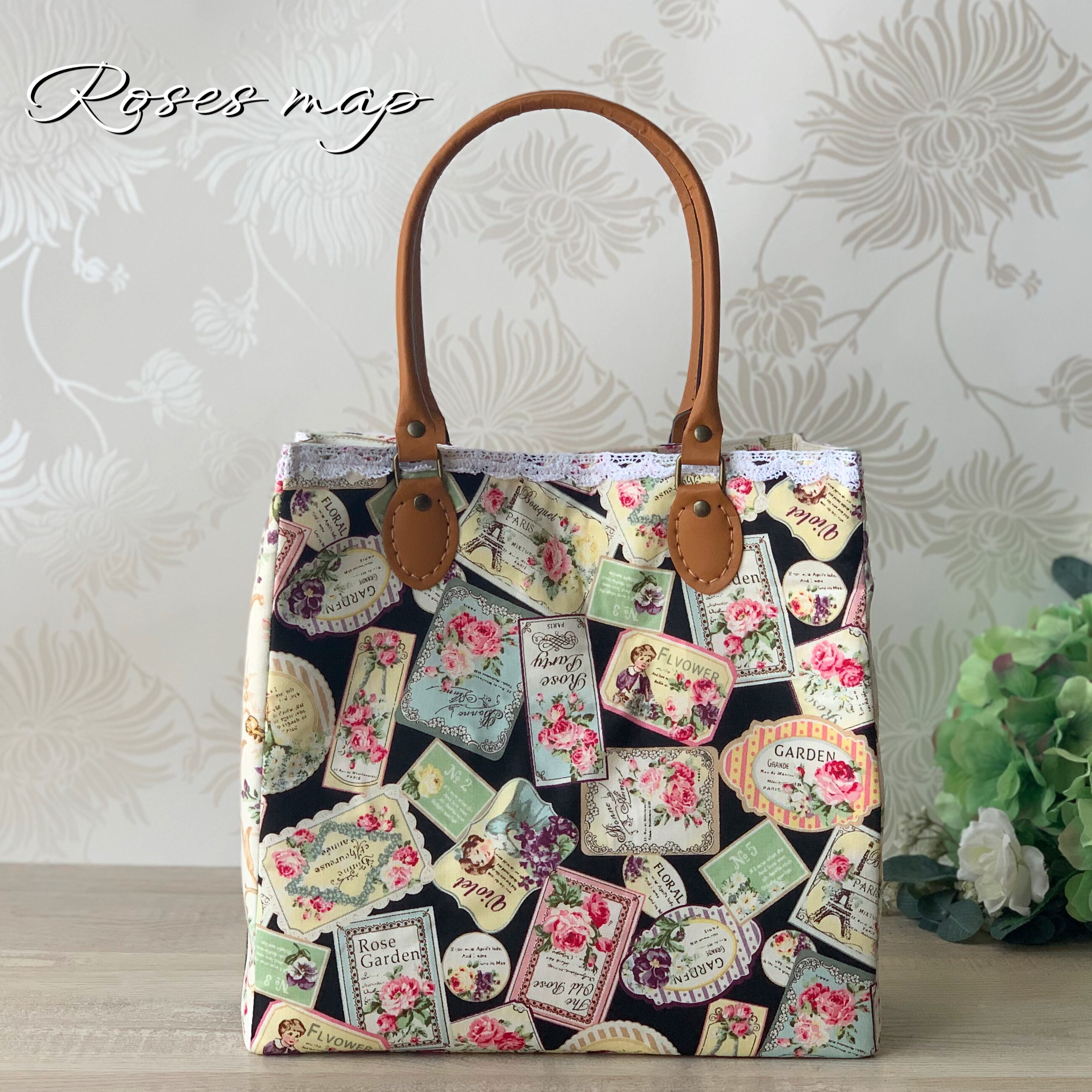 ①2410-13Bで(O-16)お花モチーフとタッセル バッグ