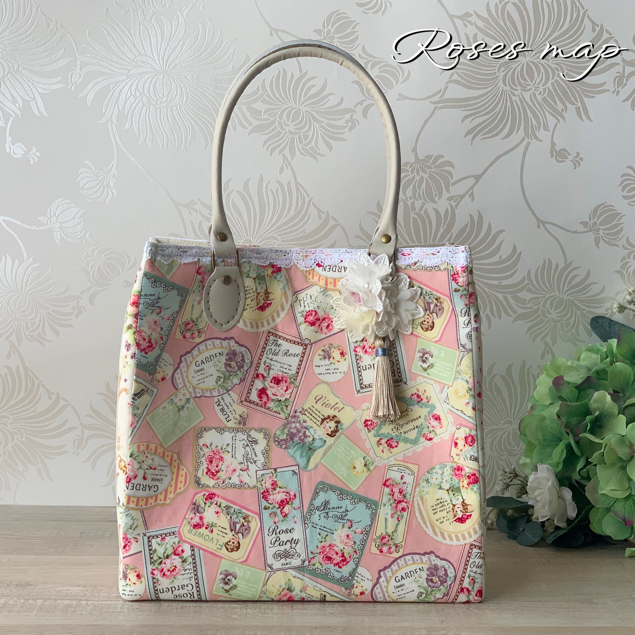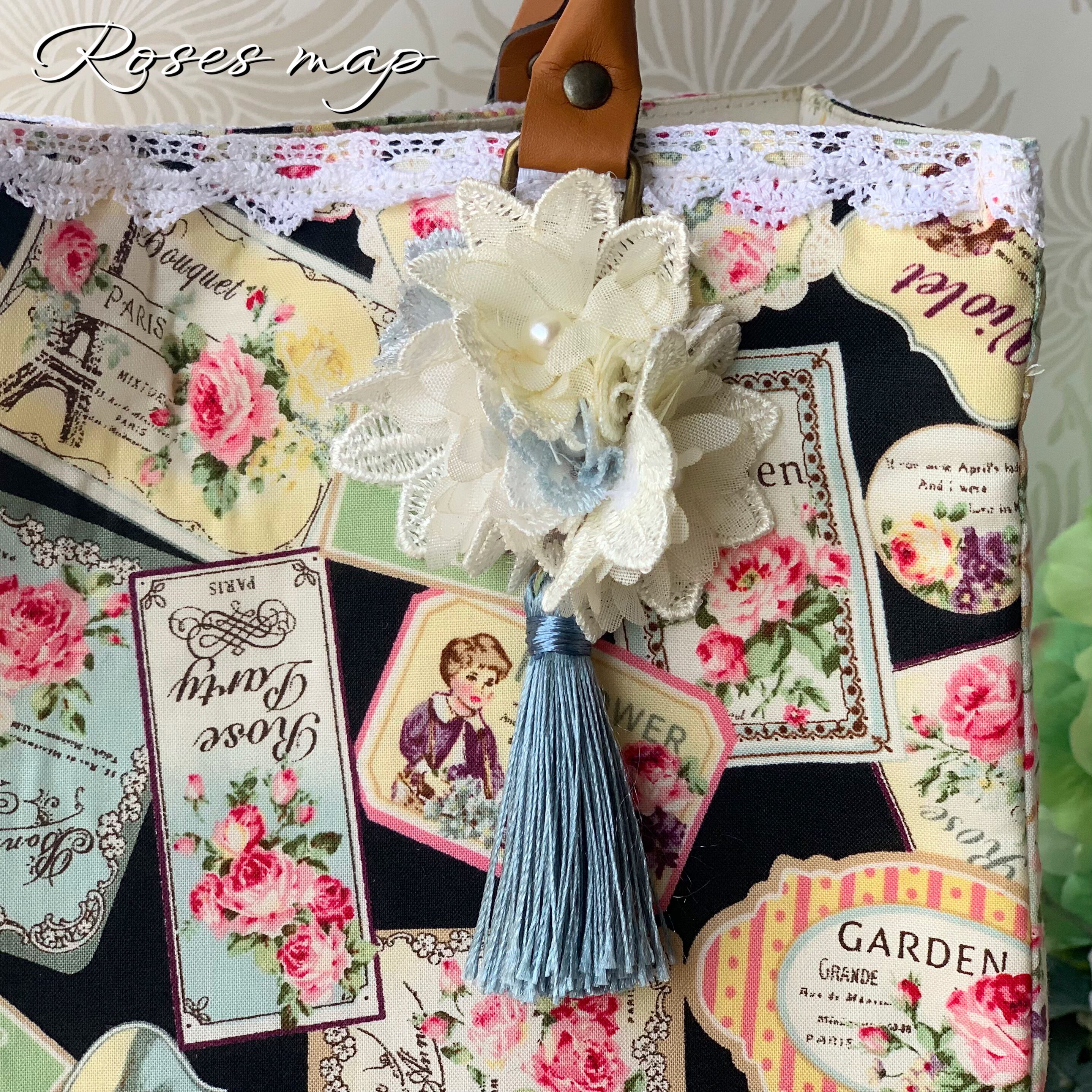 ②2410-13Eで(O-16)お花モチーフとタッセル バッグ
