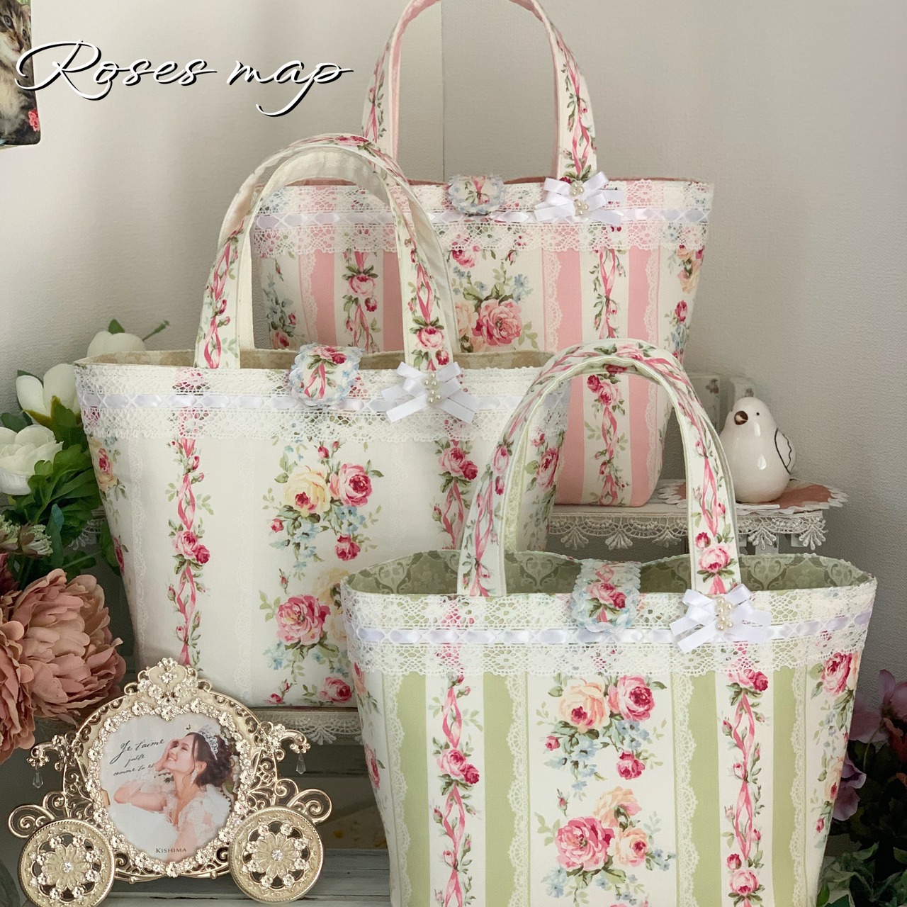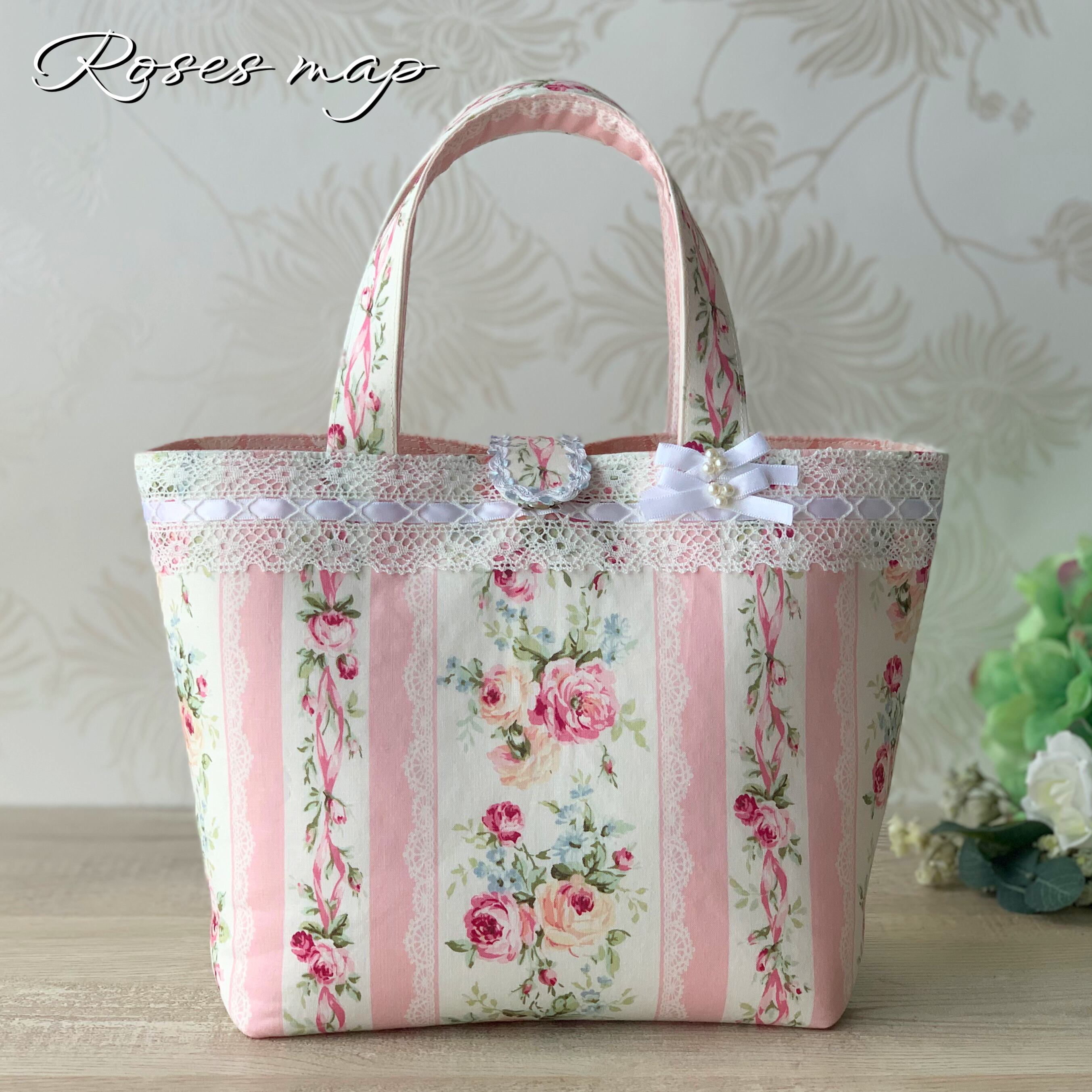 (BT-12)【バッグ】トート ランチバッグ お手頃サイズ おしゃれ小物 薔薇小物 ローズ雑貨 ピンク系
