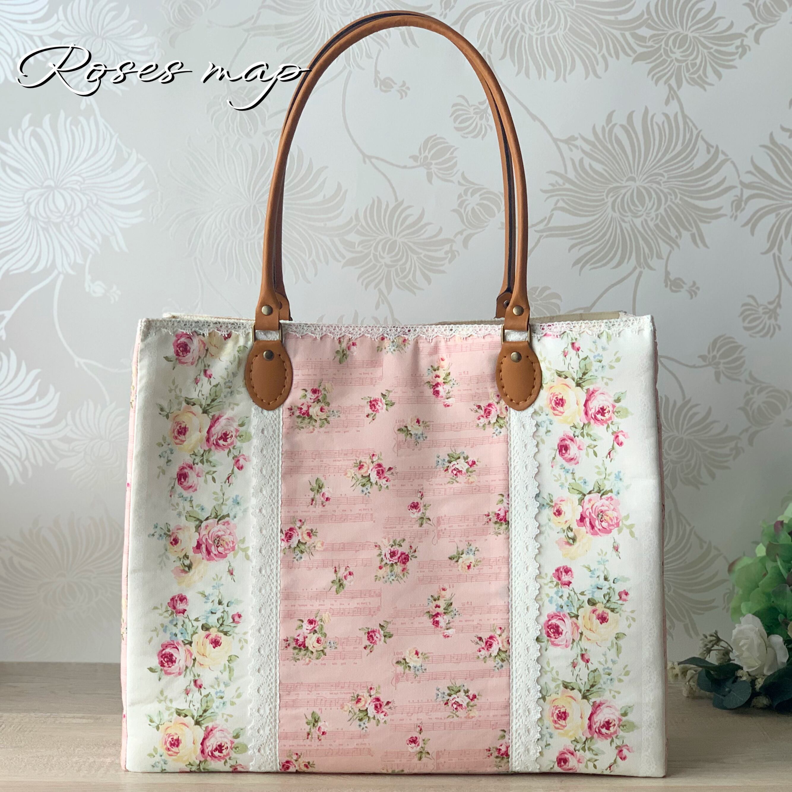 (O-35)たっぷりサイズ 薔薇モチーフ&パールビーズのバッグ