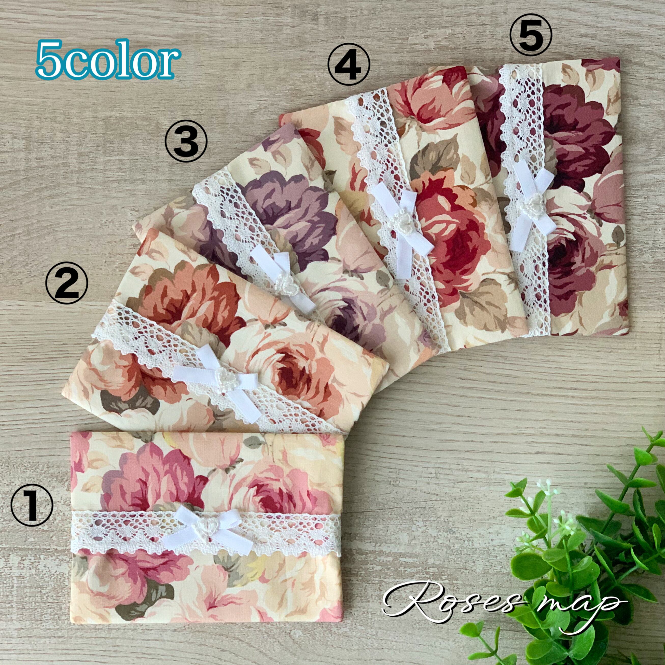 どの色も可愛らしい薔薇が施されていて使うたびに表情豊かなアクセントとなります。