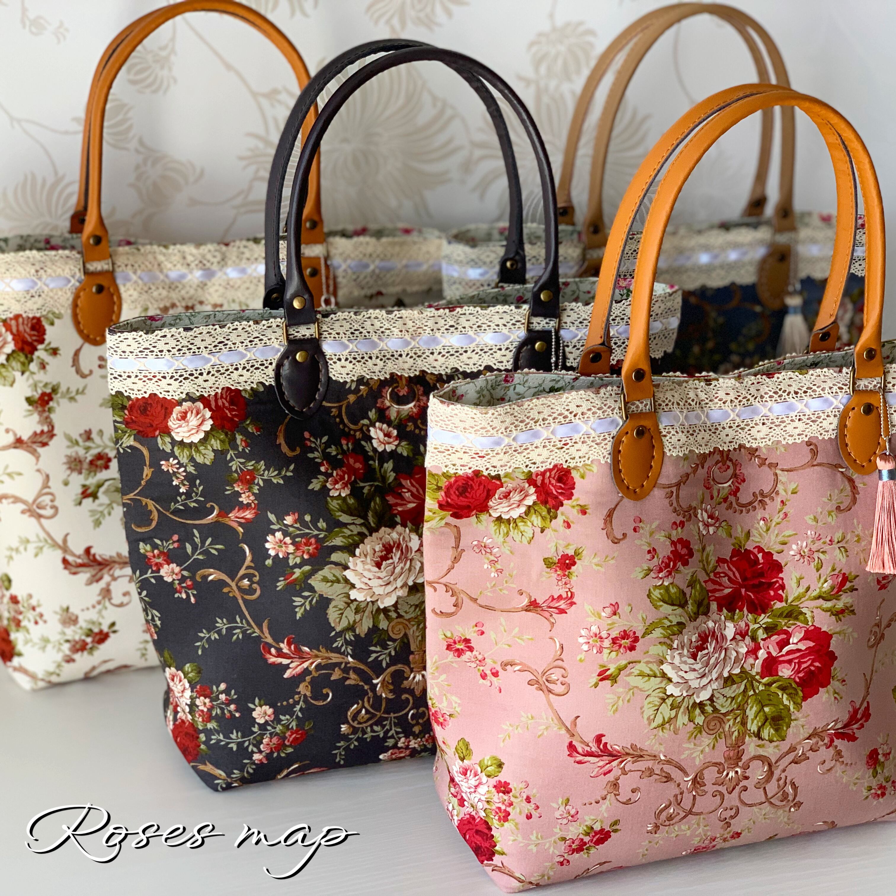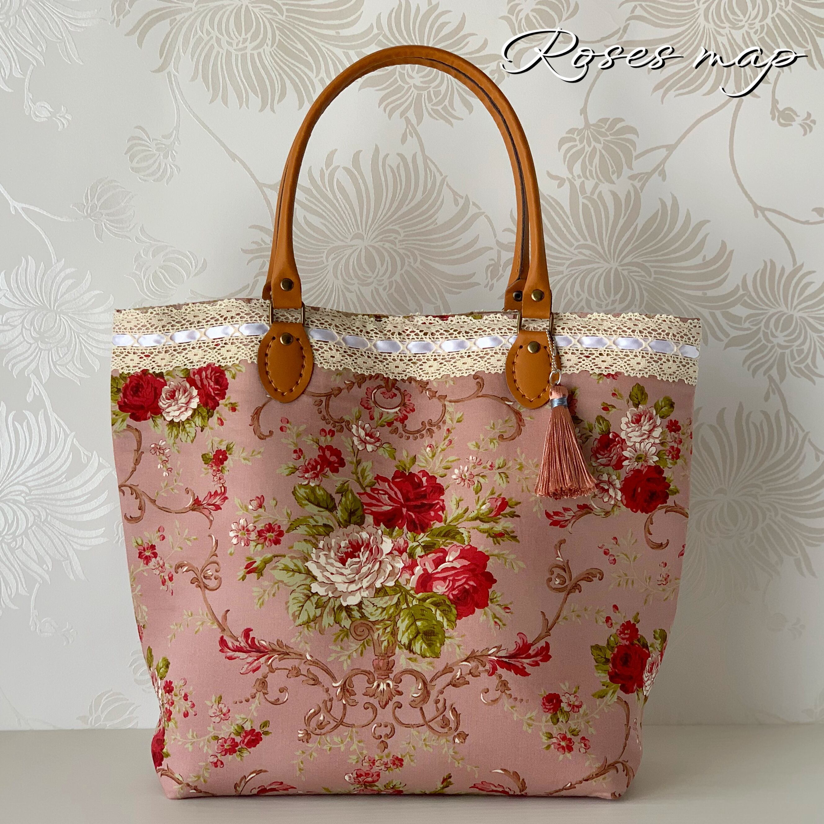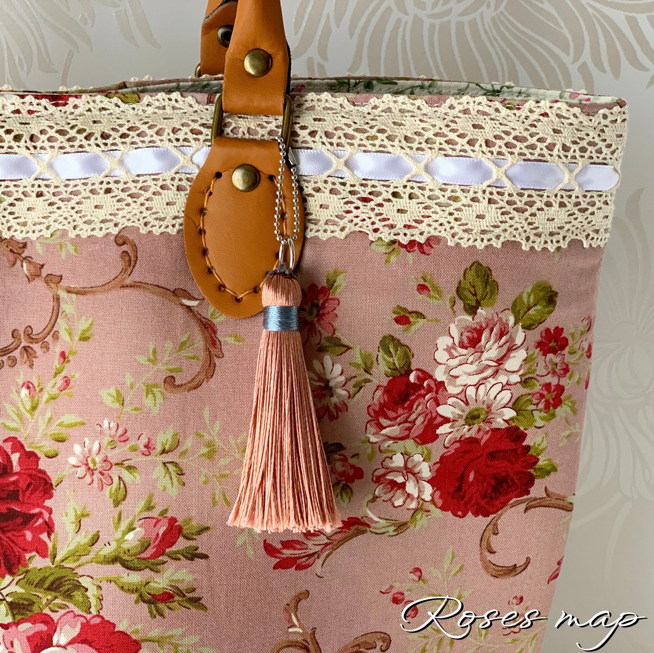 (BT-30)【バッグ】トート タッセル付 クラシックカラー おしゃれ小物 薔薇小物 ローズ雑貨 くすみピンク