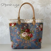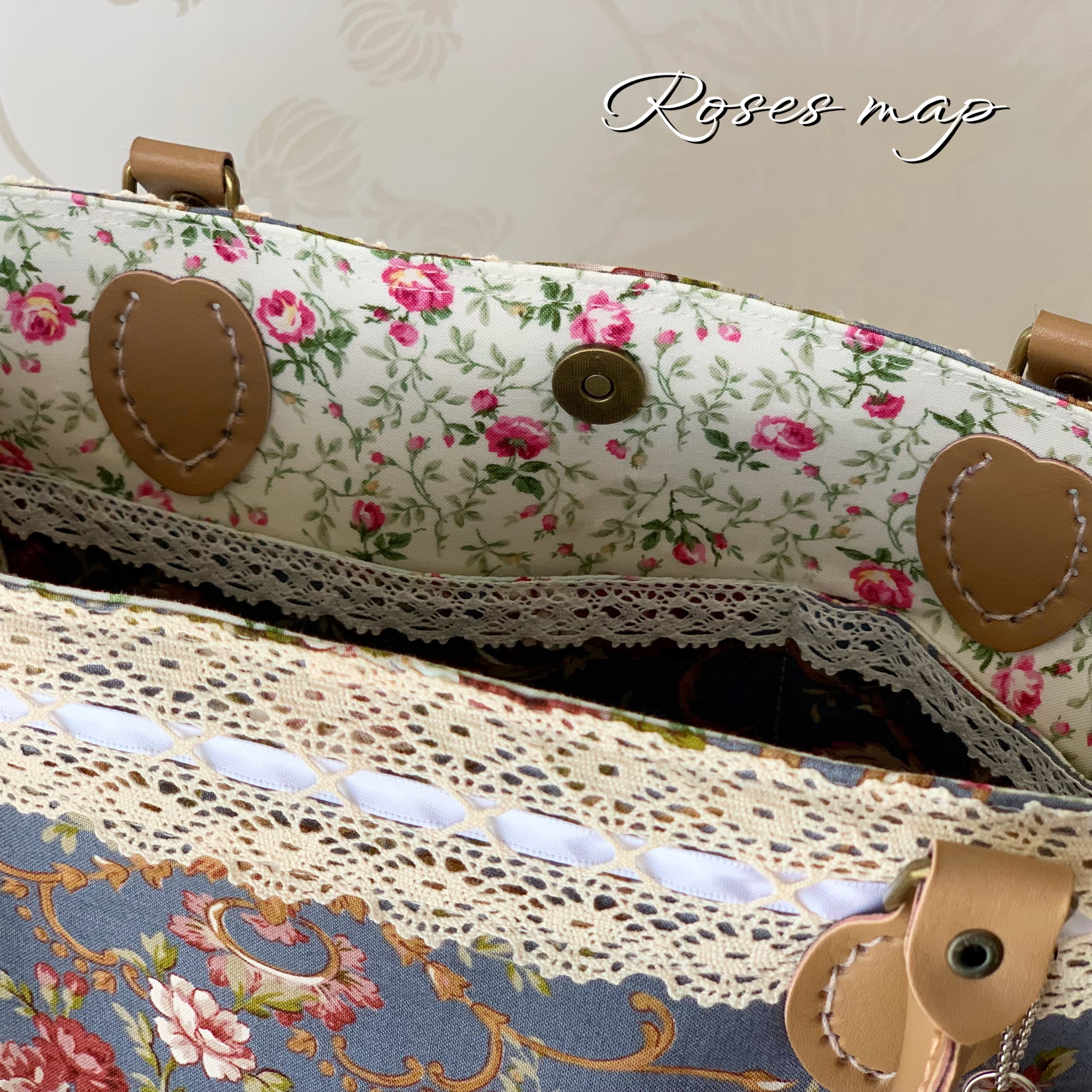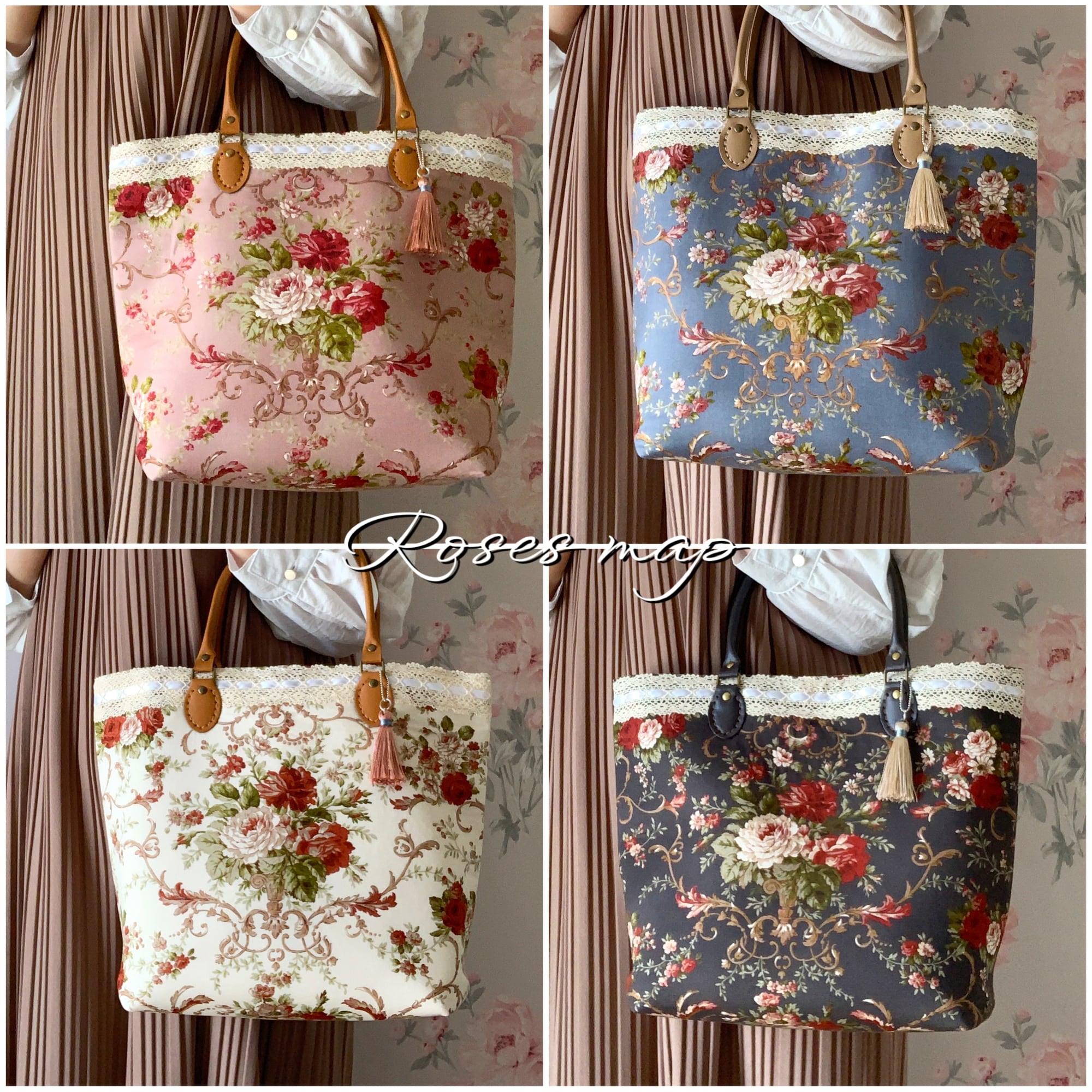 (BT-32)【バッグ】トート タッセル付 クラシックカラー おしゃれ小物 薔薇小物 ローズ雑貨 ブルー