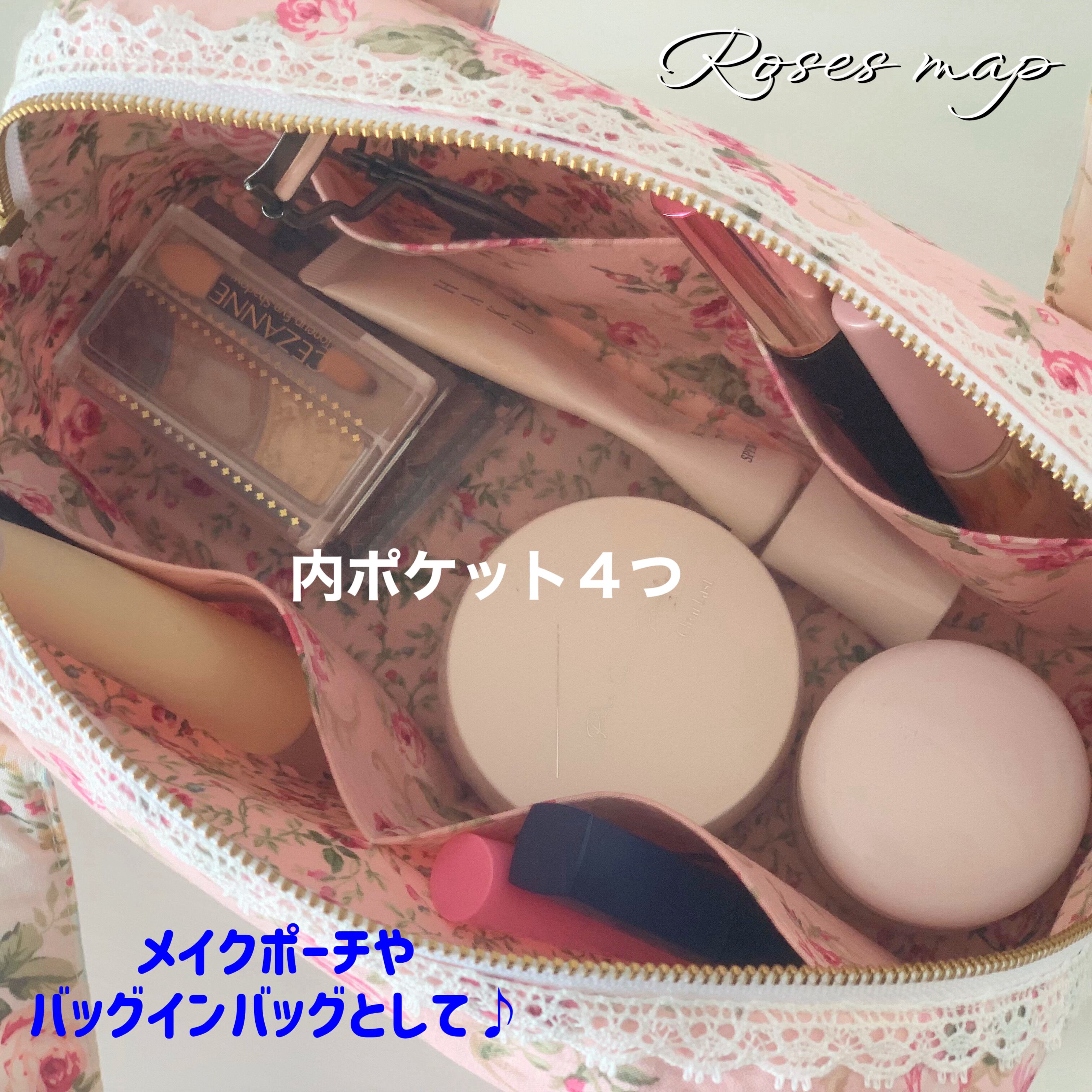 内側にはメイクブラシや小物を整理できるポケット4つ付きで収納力もあります。