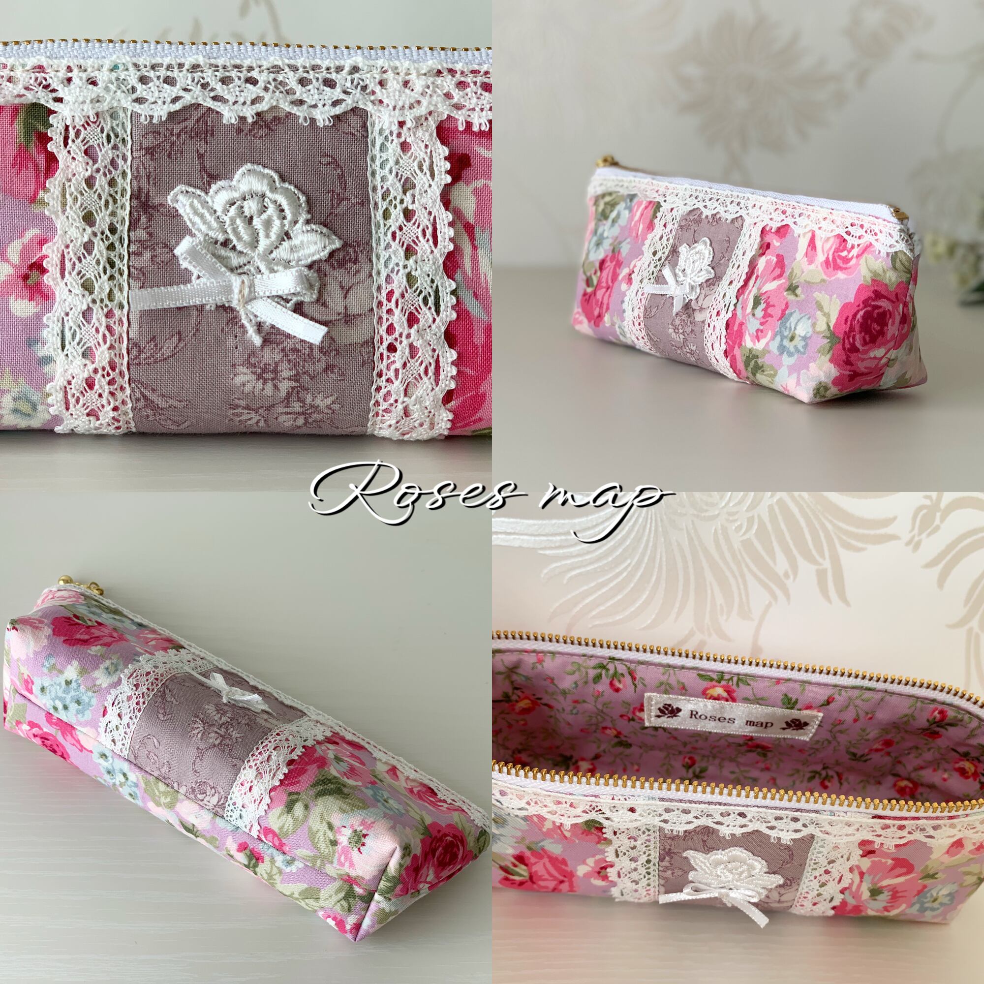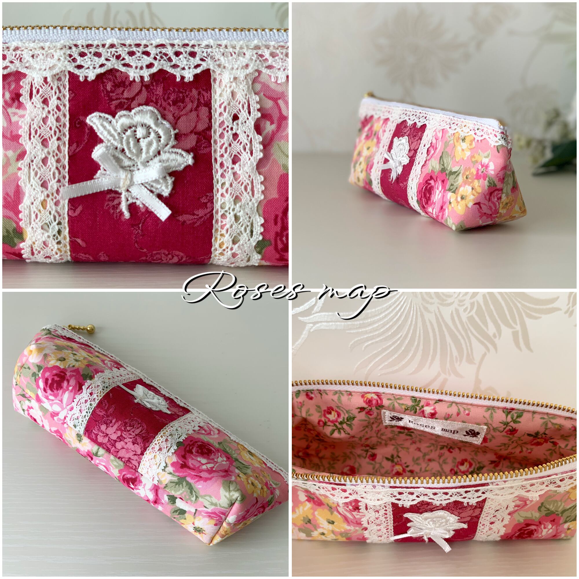 (PM-13)【ポーチ マチ付】ペンポーチ 横長タイプ メガネ 文具 おしゃれ小物 薔薇小物 ローズ雑貨