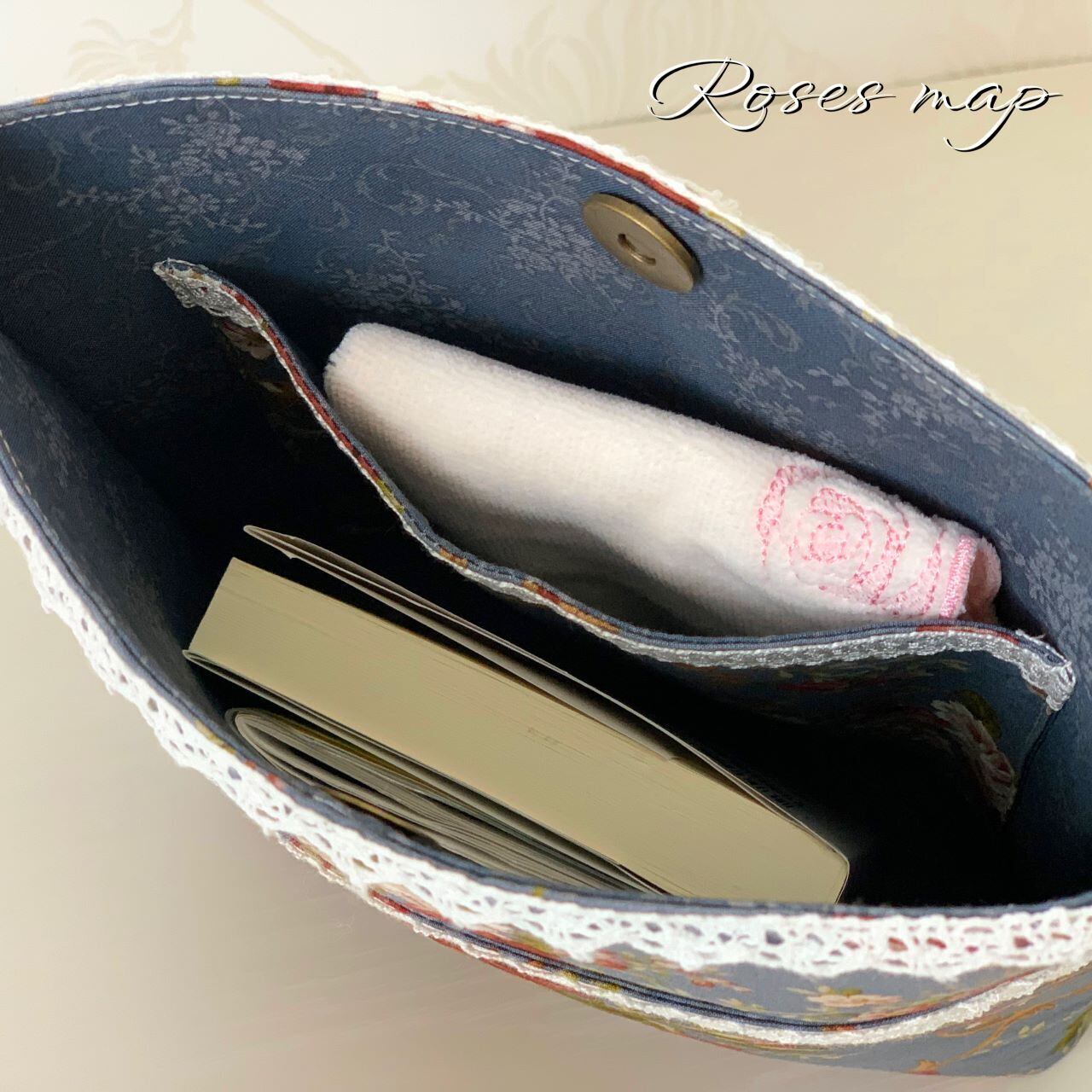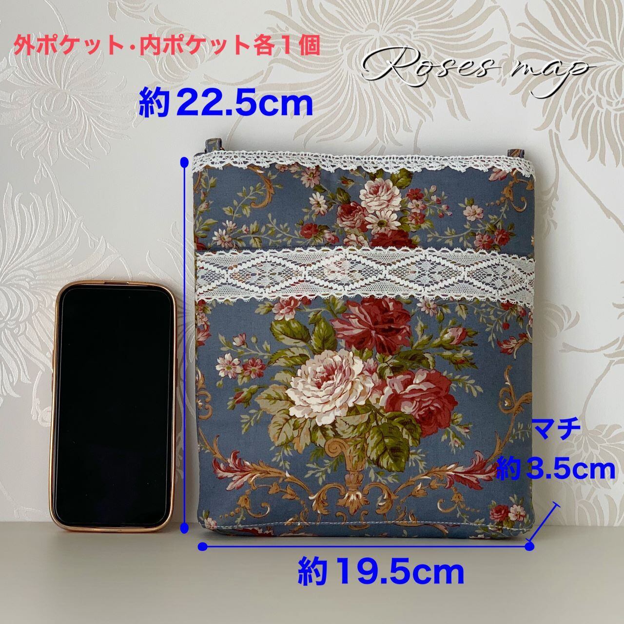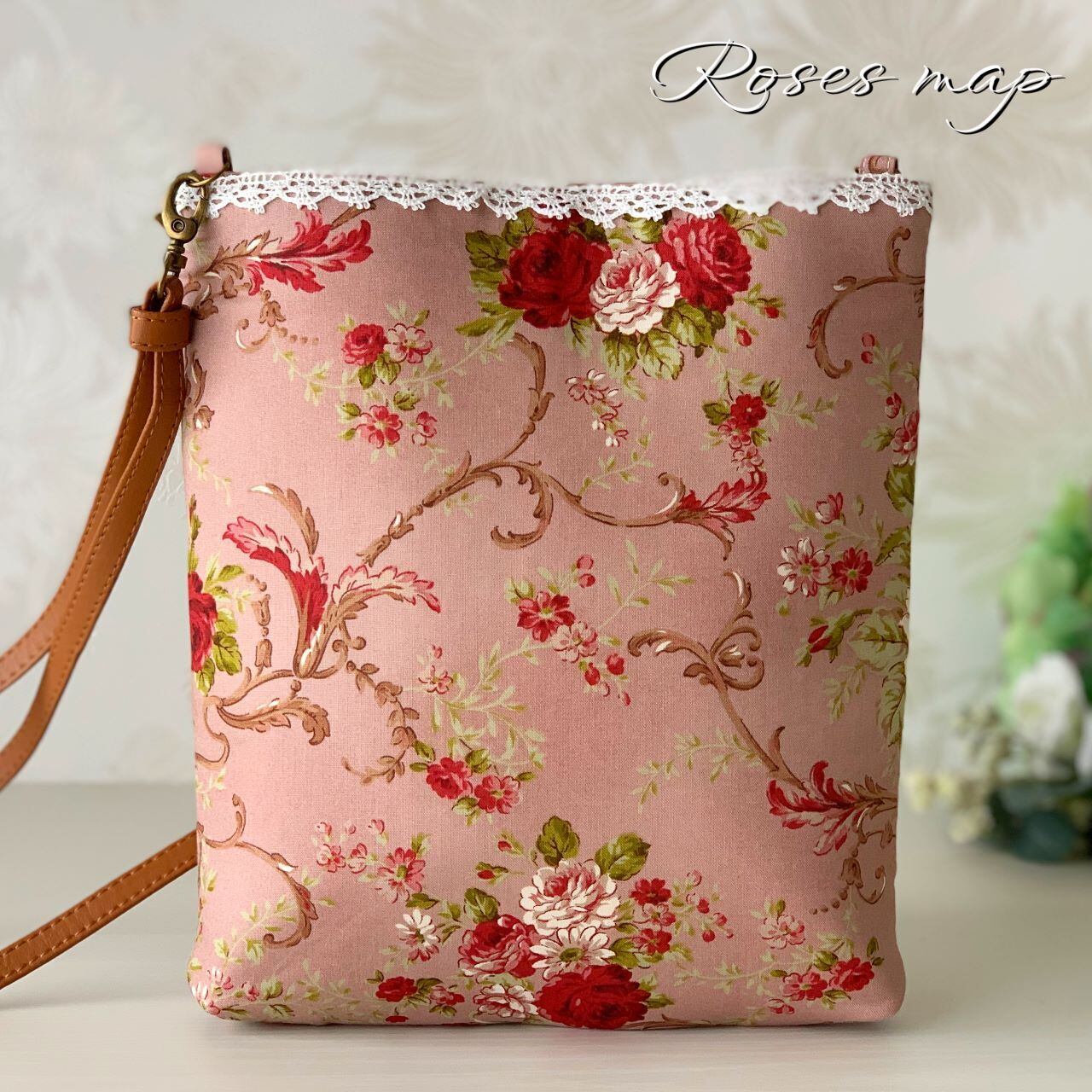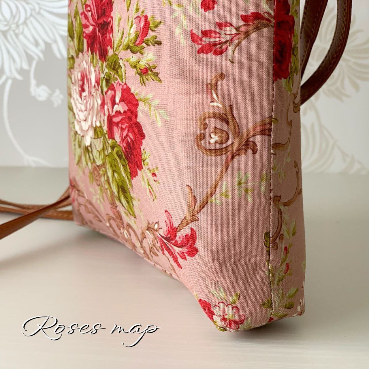 (BS-12)【ショルダーバッグ】ノーブルローズ 外ポケット付 斜めがけ クラシックカラー 薔薇小物 ローズ雑貨 くすみピンク